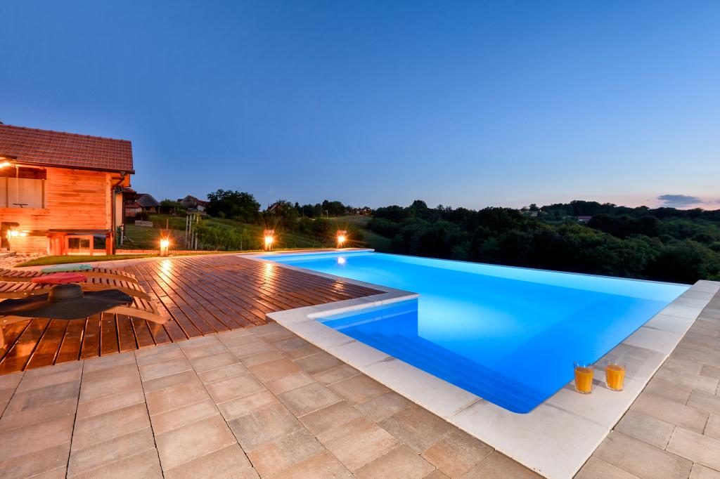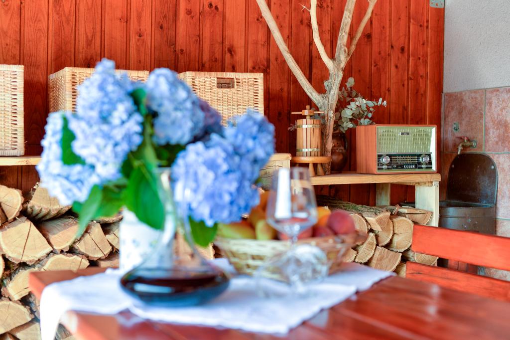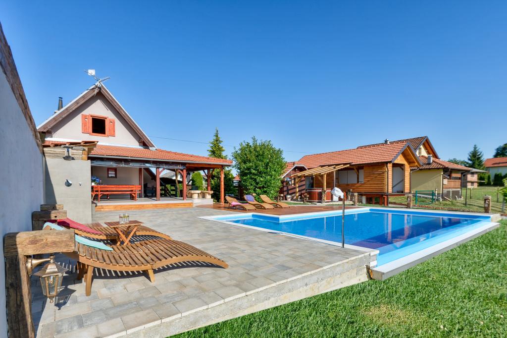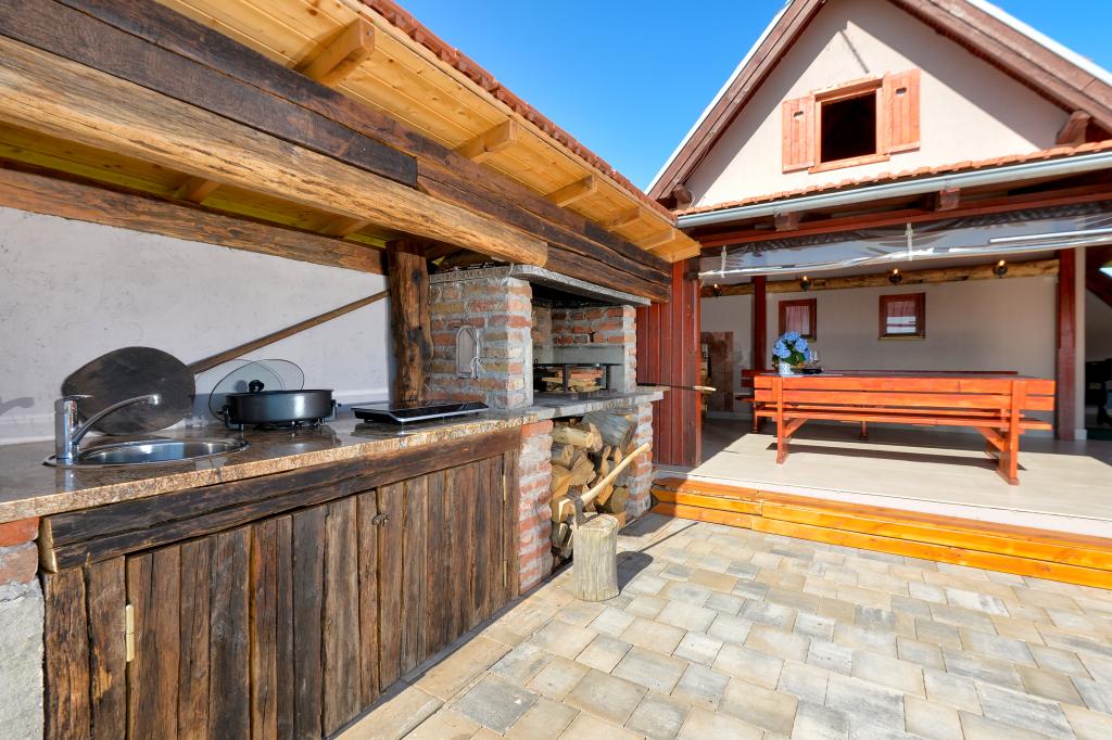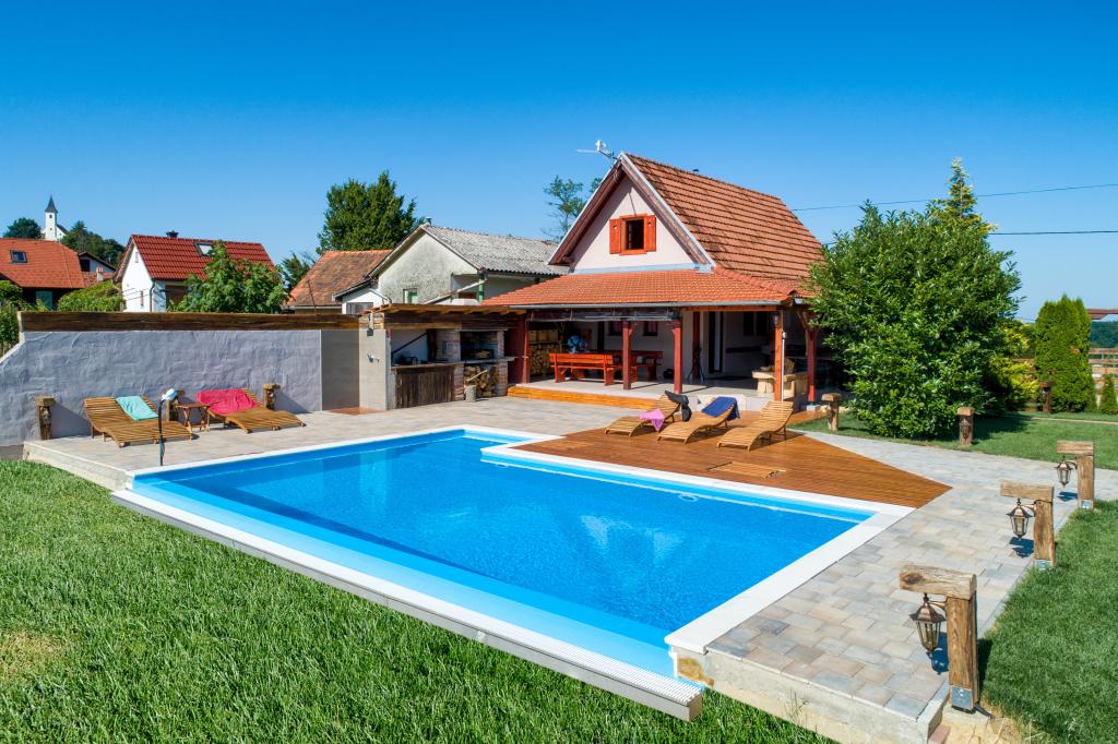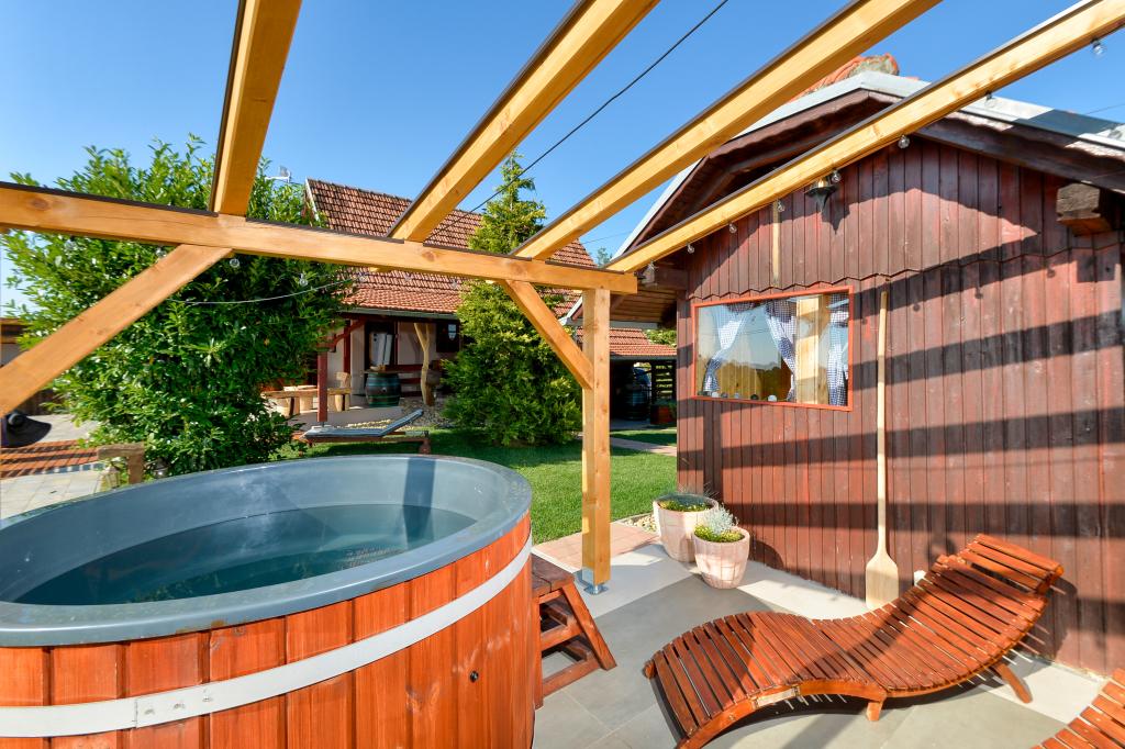 An ideal vacation from busy everyday life. The holiday home Holiday Home Dika in Kapelščak consists of two houses, one next to the other. We can accommodate up to eight people in four bedrooms, with three large double beds and two separate beds. Two kitchens inside and one outside make it possible to prepare fine food. We offer a large outdoor grill on a spacious terrace ready for family get-togethers. The sauna completes the stay in the house, and in the charmingly decorated yard is a jacuzzi pool with heated water. There is also an infinity pool with a wonderful view of nature. In the summer you can feast by the outdoor fireplace, and in the winter you can warm yourself by burning in the potash stove or just turn the thermostat and turn on the heating. In the basement of the house you will find bottles of carefully selected wines from Međimurje winemakers, with the possibility of tasting a divine drop of our climate. Next to the house there is a yard, an orchard and a forest. A pleasant walk through the beautiful nature of upper Međimurje will take you to the LifeClass Terme Sveti Martin in 25 minutes.