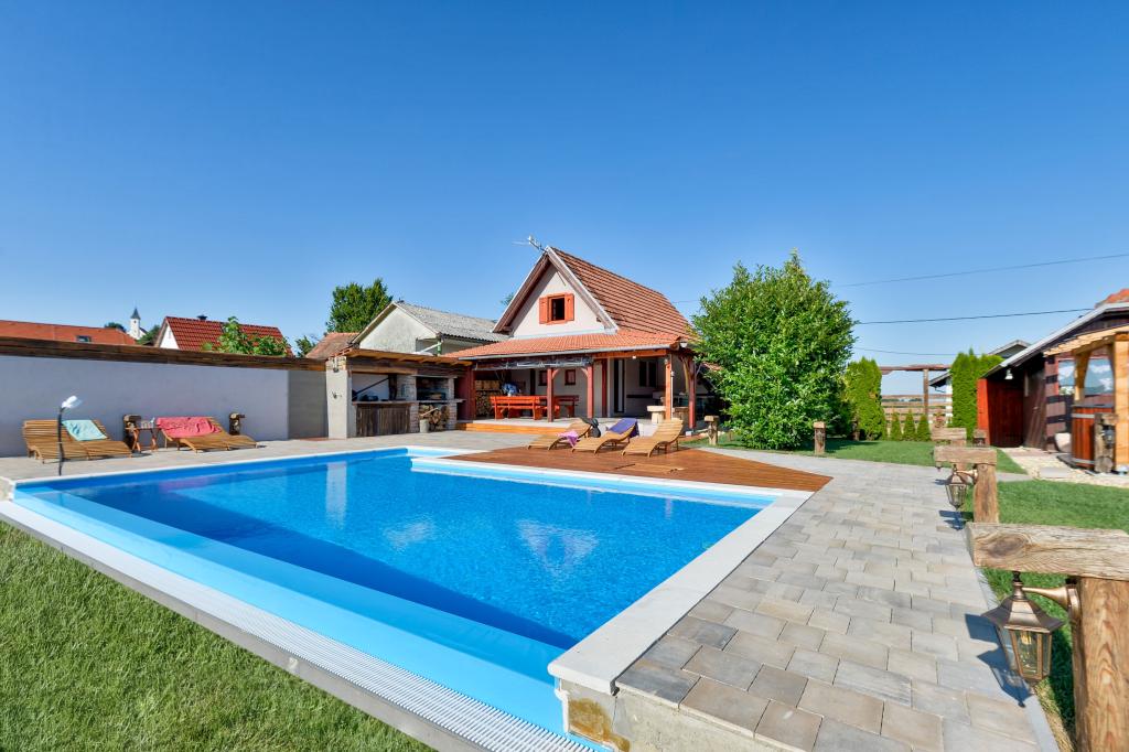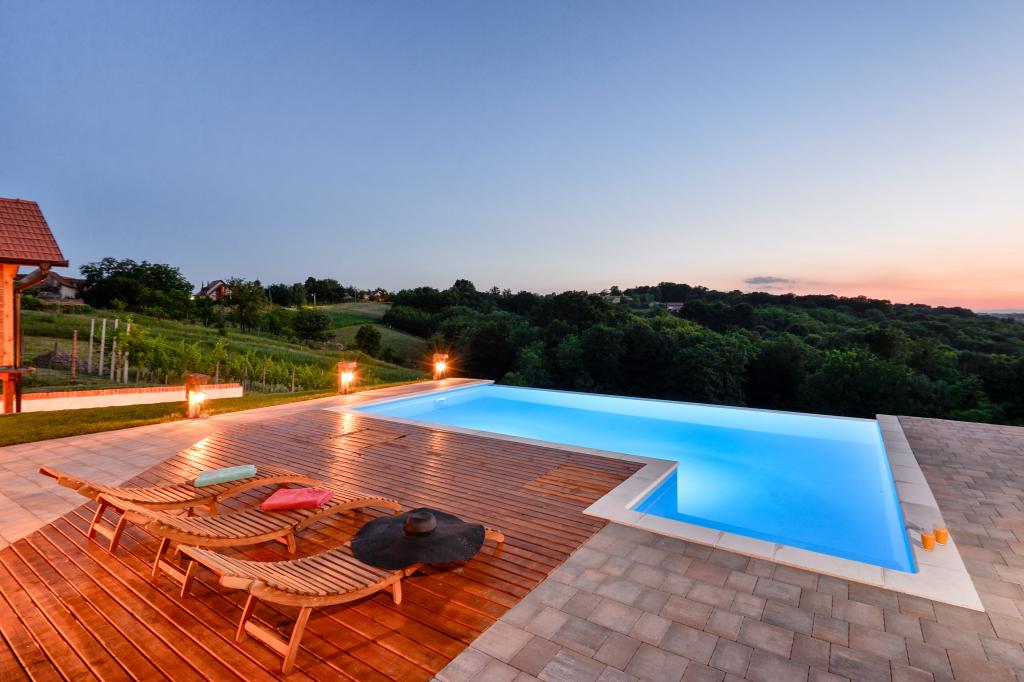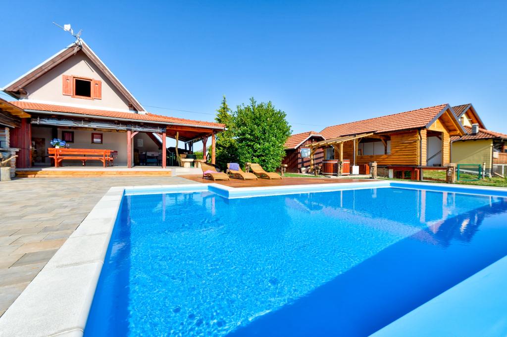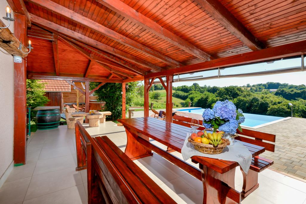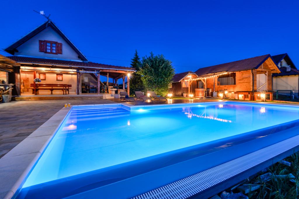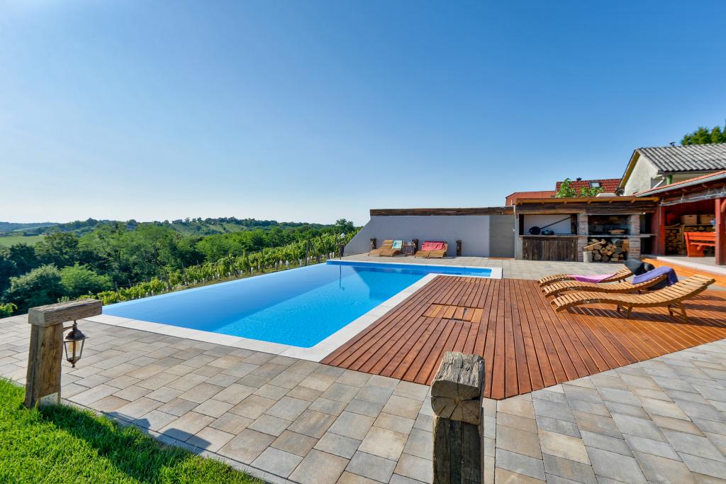 An ideal vacation from busy everyday life. The holiday home Holiday Home Dika in Kapelščak consists of two houses, one next to the other. We can accommodate up to eight people in four bedrooms, with three large double beds and two separate beds. Two kitchens inside and one outside make it possible to prepare fine food. We offer a large outdoor grill on a spacious terrace ready for family get-togethers. The sauna completes the stay in the house, and in the charmingly decorated yard is a jacuzzi pool with heated water. There is also an infinity pool with a wonderful view of nature. In the summer you can feast by the outdoor fireplace, and in the winter you can warm yourself by burning in the potash stove or just turn the thermostat and turn on the heating. In the basement of the house you will find bottles of carefully selected wines from Međimurje winemakers, with the possibility of tasting a divine drop of our climate. Next to the house there is a yard, an orchard and a forest. A pleasant walk through the beautiful nature of upper Međimurje will take you to the LifeClass Terme Sveti Martin in 25 minutes.