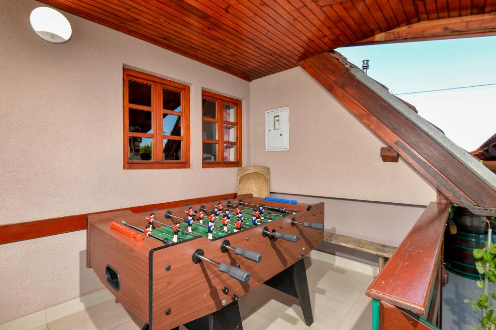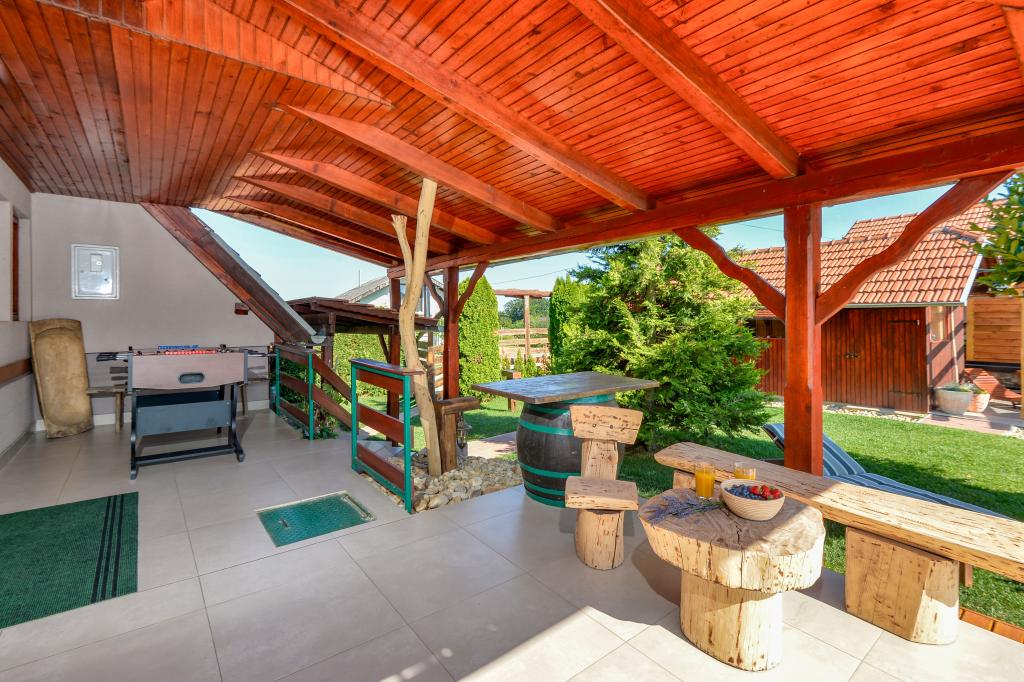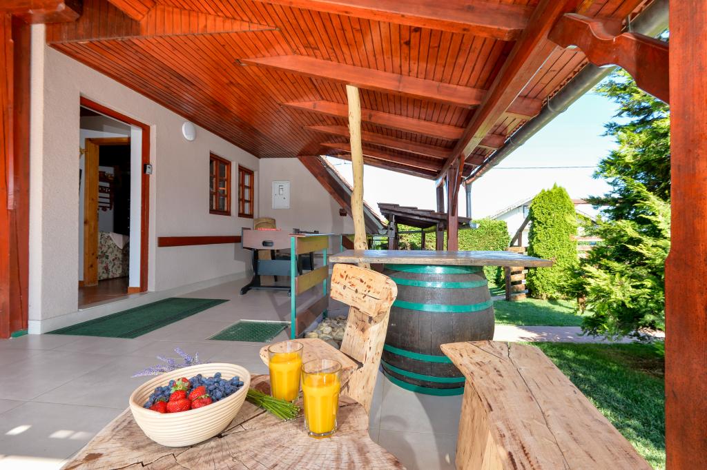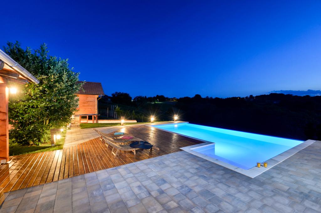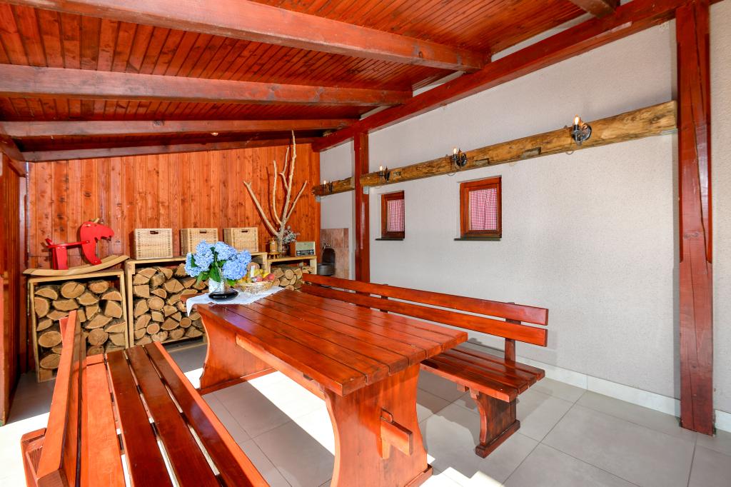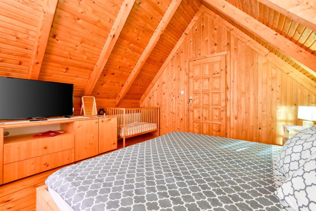 An ideal vacation from busy everyday life. The holiday home Holiday Home Dika in Kapelščak consists of two houses, one next to the other. We can accommodate up to eight people in four bedrooms, with three large double beds and two separate beds. Two kitchens inside and one outside make it possible to prepare fine food. We offer a large outdoor grill on a spacious terrace ready for family get-togethers. The sauna completes the stay in the house, and in the charmingly decorated yard is a jacuzzi pool with heated water. There is also an infinity pool with a wonderful view of nature. In the summer you can feast by the outdoor fireplace, and in the winter you can warm yourself by burning in the potash stove or just turn the thermostat and turn on the heating. In the basement of the house you will find bottles of carefully selected wines from Međimurje winemakers, with the possibility of tasting a divine drop of our climate. Next to the house there is a yard, an orchard and a forest. A pleasant walk through the beautiful nature of upper Međimurje will take you to the LifeClass Terme Sveti Martin in 25 minutes.