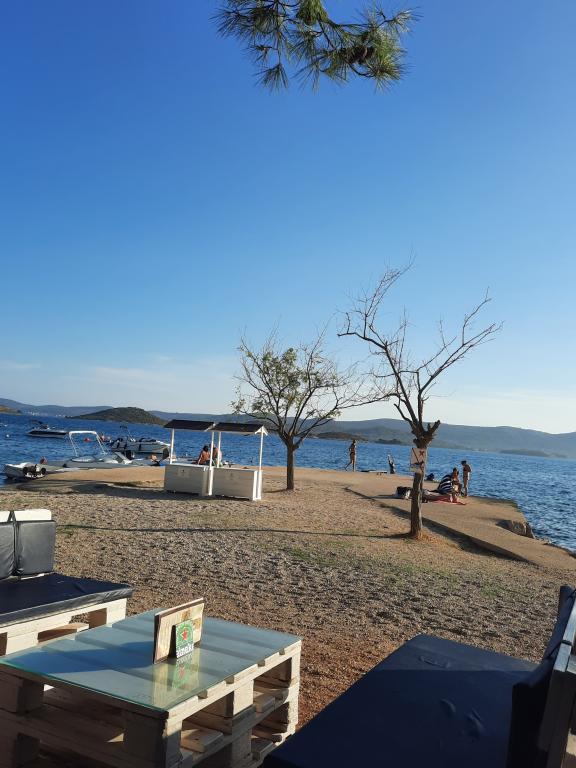 Residential tax is included in price. Booking confirmation document upon reservationNear the building there is a bakery with fresh products and bread. Right next to the beach is the beautiful beach bar Vanilla, with a wide range of drinks, ice cream, cocktails, as well as fast food and meals to order, where you will find refreshment in the shade of pine trees. If you decide to visit the national parks, you have the option of making an agreement with the travel organizers. We gladly advise our guests to visit the old center of Zadar, the Sea Organ, Salutation to the Sun, the church of St. Donata from the 9th century, museums and only 20 minutes away. driving a car.