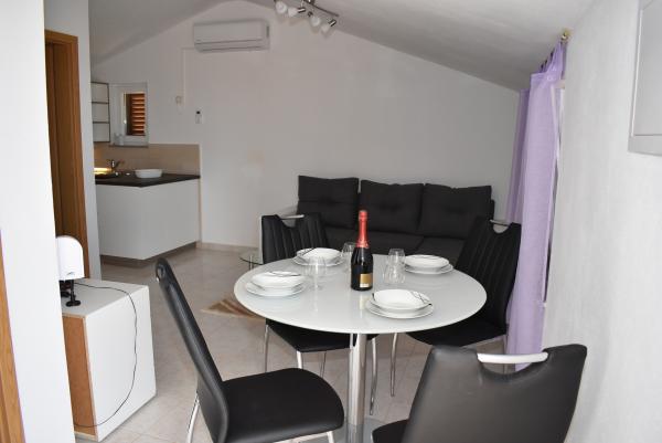 With a kind, simple and unobtrusive owner (does not live in the house where these apartments are, but to live, it would probably be the same, this apartment is perfect for a family of three or four. Spacious terrace, spacious apartment, all neat, clean and maintained. The appliances all work, everything is as in the pictures and even better, since we were surprised because we had a washing machine, iron and ironing board, hair dryer ... which is not visible in the pictures, and in the equipment there is. Vlatka and the boys