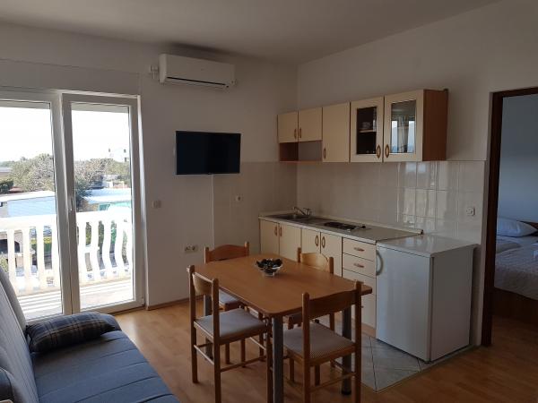 Super accommodation, very friendly hosts, fair and honest attitude. Very friendly house on a super location, practically on the beach, everything is very close, shop, restaurant. Recommended for families with children, super sandy beach practically at the end of the courtyard houses, no crowds. Apartments decorated, all as it says in the description, to house a large fireplace, a lot of shadows. To see what attractions, entertainment-seeking children is very close to Biograd and Zadar. In short, really a great location and accommodation, you really are from our side deserve the rating 10 + !!!