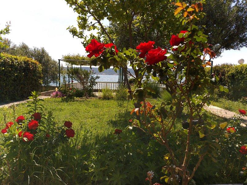 Fully equipped charming house with four bedrooms and two terraces in the middle of a private garden from which you can go directly down to the sea and the beach at any time. The perfect location for a relaxing holiday, sunbathing in privacy, barbecuing by the sea and enjoying the joys of the sea. The house was partially renovated this year.
