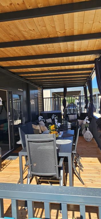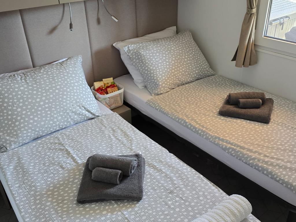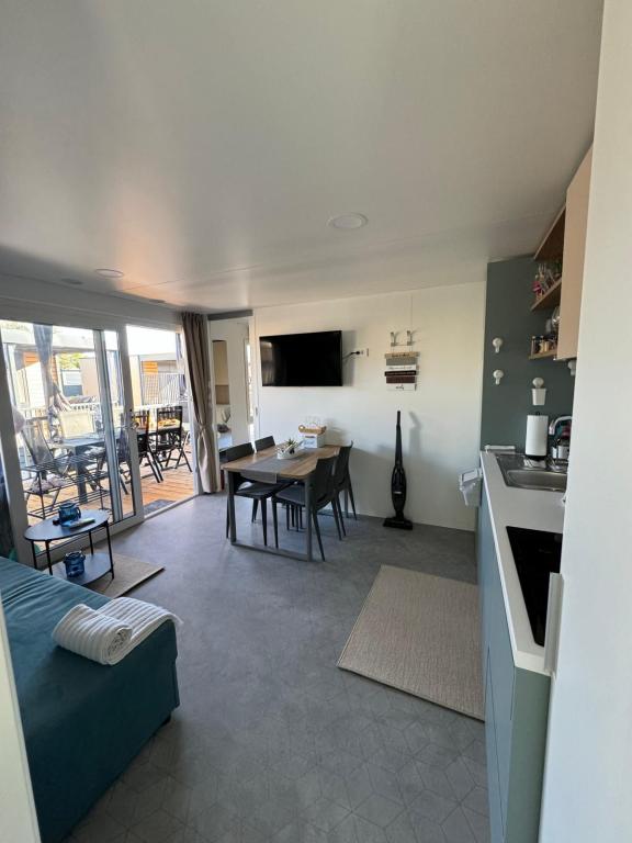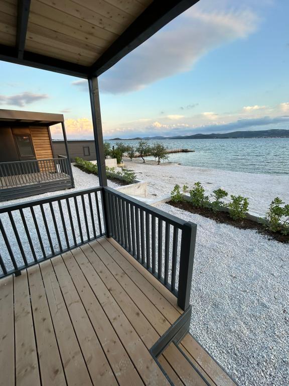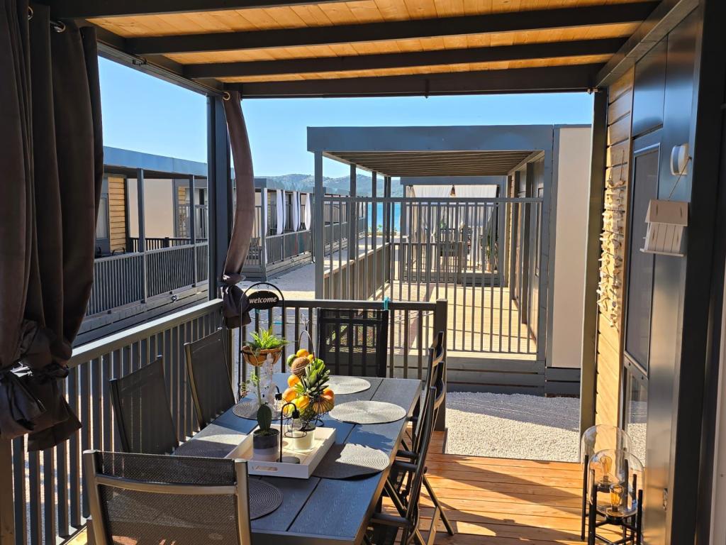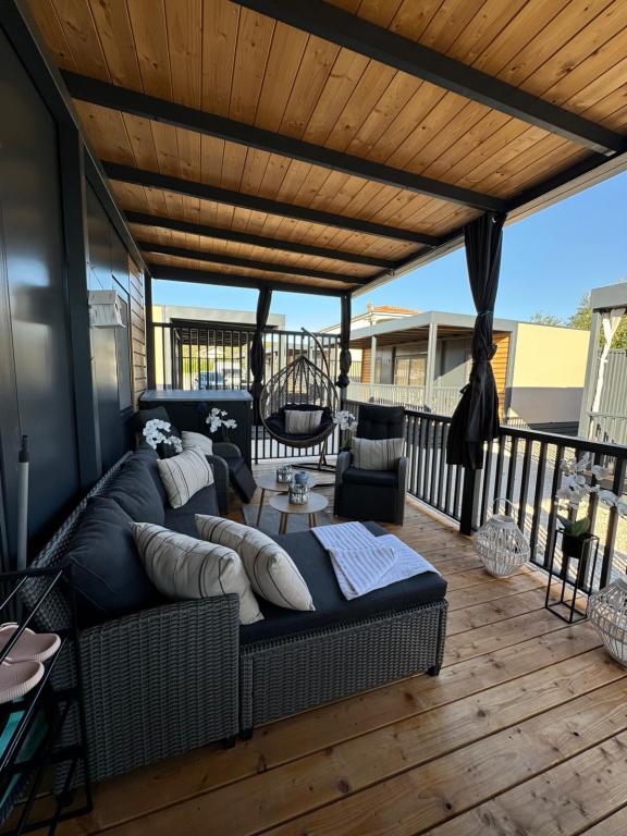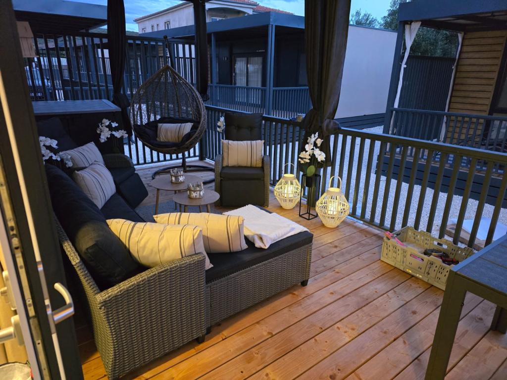 Mobile home located in a quiet campsite, just 40 meters from the beach, spacious terrace with gas barbecue and ceiling fans and additional relaxation facilities, swing and armchairs. The house is equipped with all the additional equipment and dishes you need to enjoy your vacation just like at home. Vehicles are prohibited in the campsite itself so that children can enjoy playing carefree while you rest.