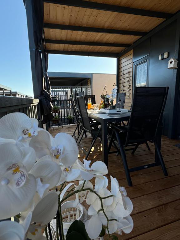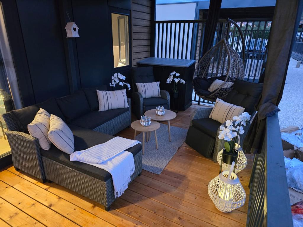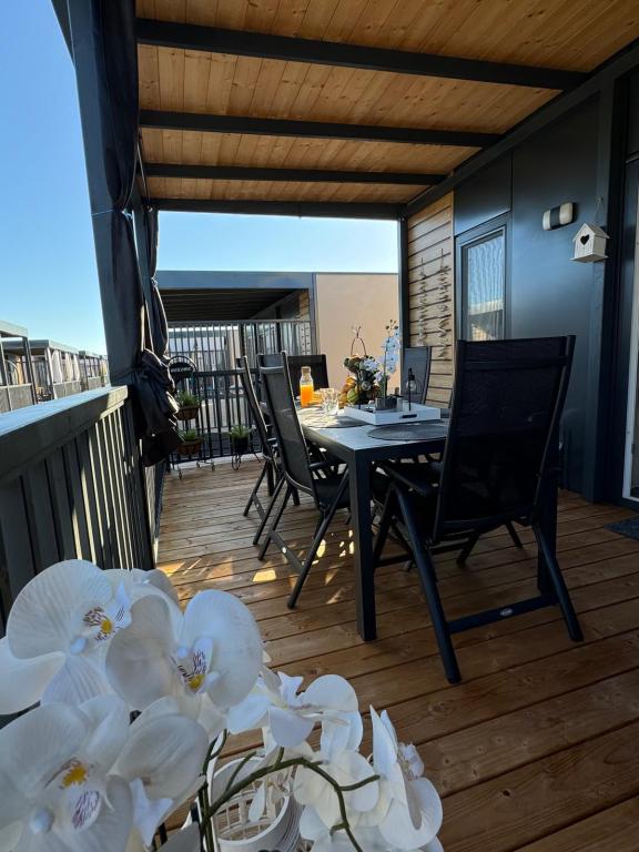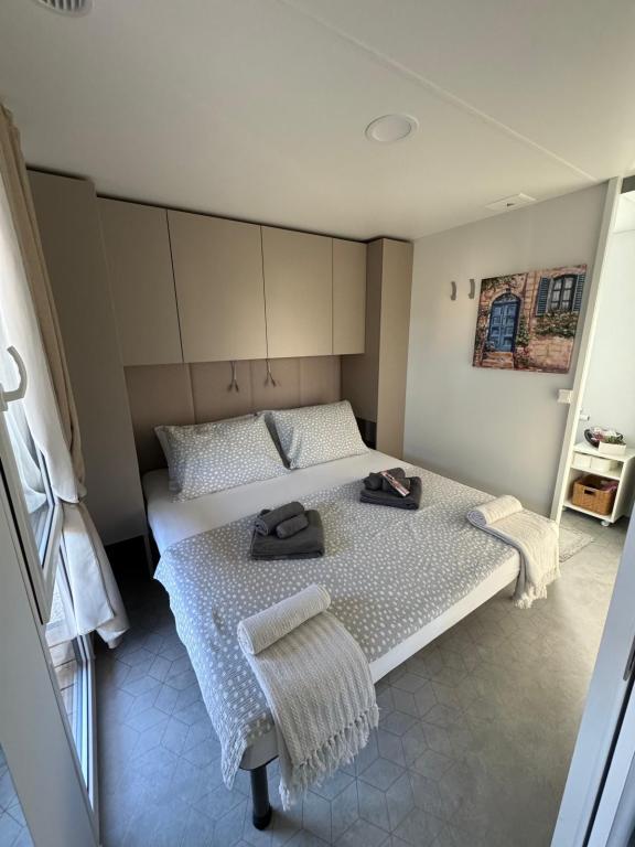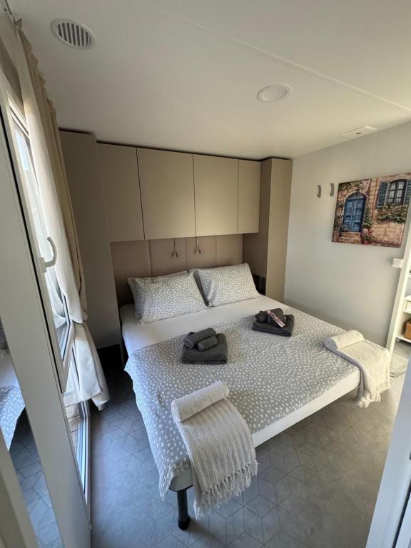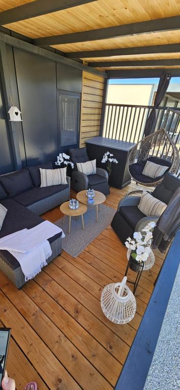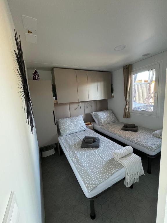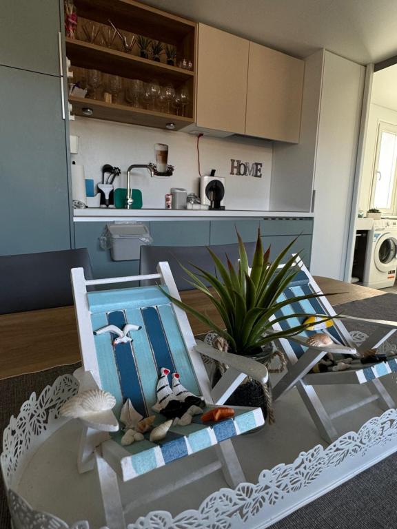 Mobile home located in a quiet campsite, just 40 meters from the beach, spacious terrace with gas barbecue and ceiling fans and additional relaxation facilities, swing and armchairs. The house is equipped with all the additional equipment and dishes you need to enjoy your vacation just like at home. Vehicles are prohibited in the campsite itself so that children can enjoy playing carefree while you rest.