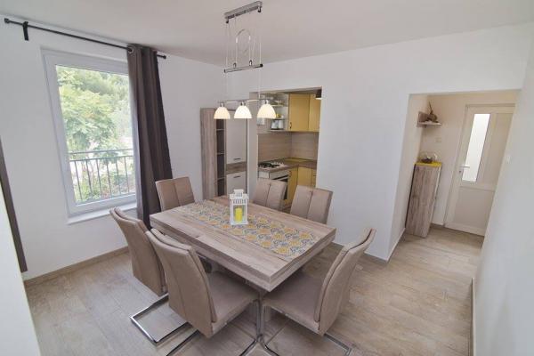 Apartment in a small family house, located by the sea, 5 minutes walk from the main beach in mjestu.Također be possible to swim in front of the This apartment is located in a quiet part of town, ideal for a family holiday. It is fully equipped, with a really big terrace (20m2), partly covered. The apartment has a separate entrance and parking in the yard can be used and roštilj.Apartman is air conditioned and has a secured Wi-Fi It consists of a large bedroom with a double bed, a living room with sofa bed for two adults, bathroom and kuhinje.Također it is possible to ensure a berth in front. The center is located about 15 minutes' walk away.