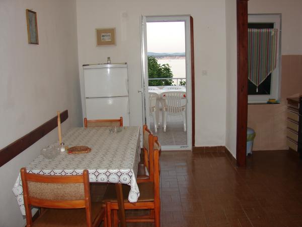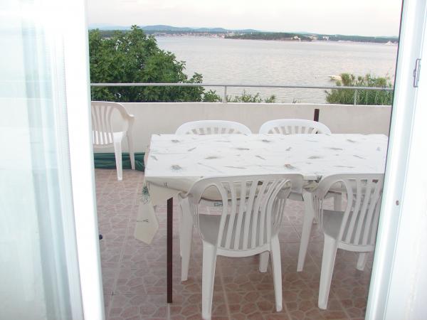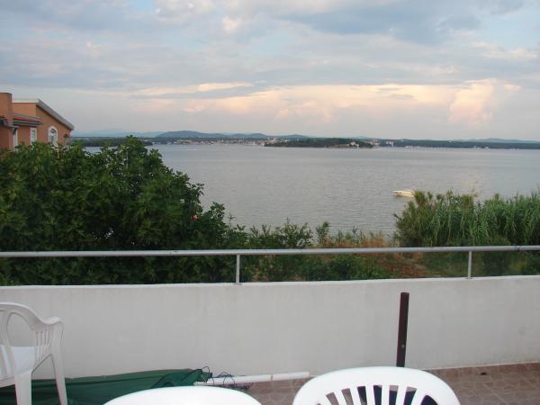 House in a quiet part of Tkon on the island of Pašman, arrival in the town is by ferry that runs every hour if necessary and more from Biograd. The house in which the apartments are first row to the sea 10 meters, the area of the apartment is 130 m2, it is a 10-minute walk to the center, there is a large parking lot in front of the house, the apartment is equipped with everything necessary for preparing food and drinks, wi-fi, air conditioning, TV, outdoor shower, barbecue. The layout of the apartment is three bedrooms plus another children's room, bathroom and toilet, plus another toilet, large terrace overlooking the sea, kitchen and large living room. The terrace covered for sunbathing and socializing is connected to the kitchen, overlooking the sea and surrounding areas. The apartments are exclusively for rent, the entire house can be rented, ideal for a family.