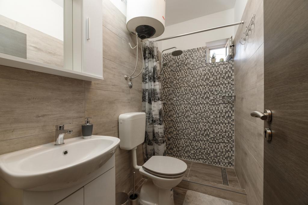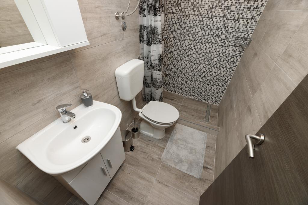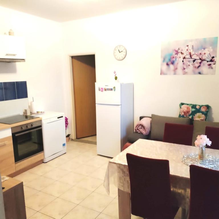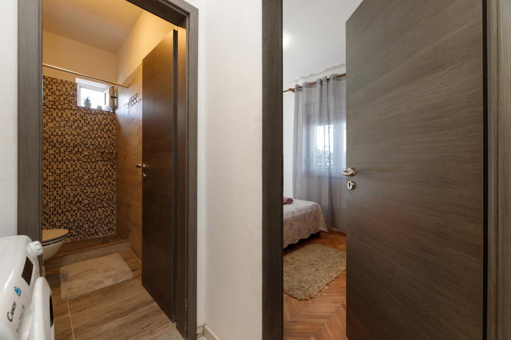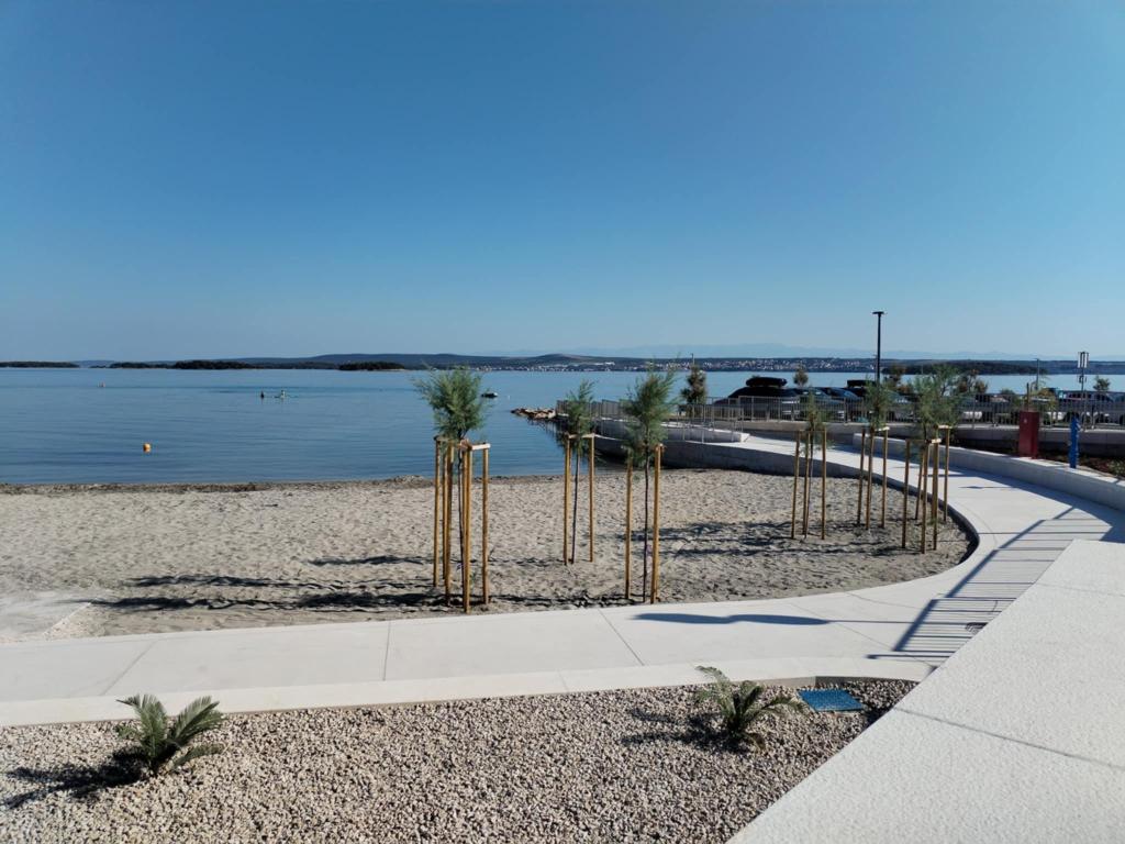 One bedroom apartment in Tkon on the island of Pasman, 20 m from the sandy beach and 50 m from the center of Tkon, is located on the ground floor. It has a room with a double bed for two people and a sofa bed for two people. Bathroom with shower, washing machine, kitchen with oven and dishwasher. The apartment is fully equipped, has TV, internet, air conditioning, parking, grill. It has a terrace overlooking the sea. Near the apartment there are all the necessary facilities, shops, restaurants, taverns, coffee bars, bakery, pastry shop, butcher, pharmacy, clinic. In Tkon, guests can enjoy the numerous sandy beaches in the bays, ride a bike along the bike paths along the island, various events and festivities during the summer and visit the nearby Kornati National Park by organized boat from Tkon. They can also visit the Vrana Lake Nature Park.