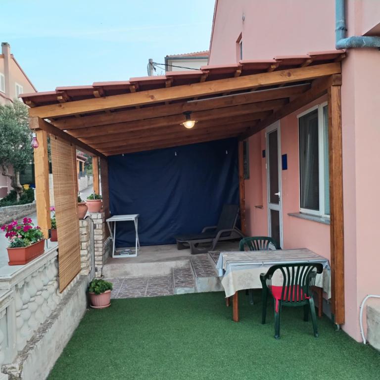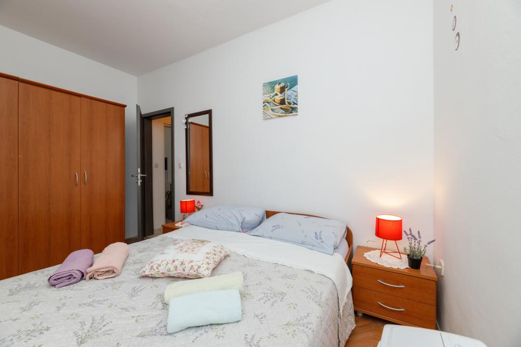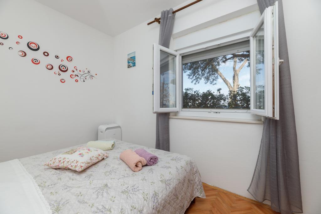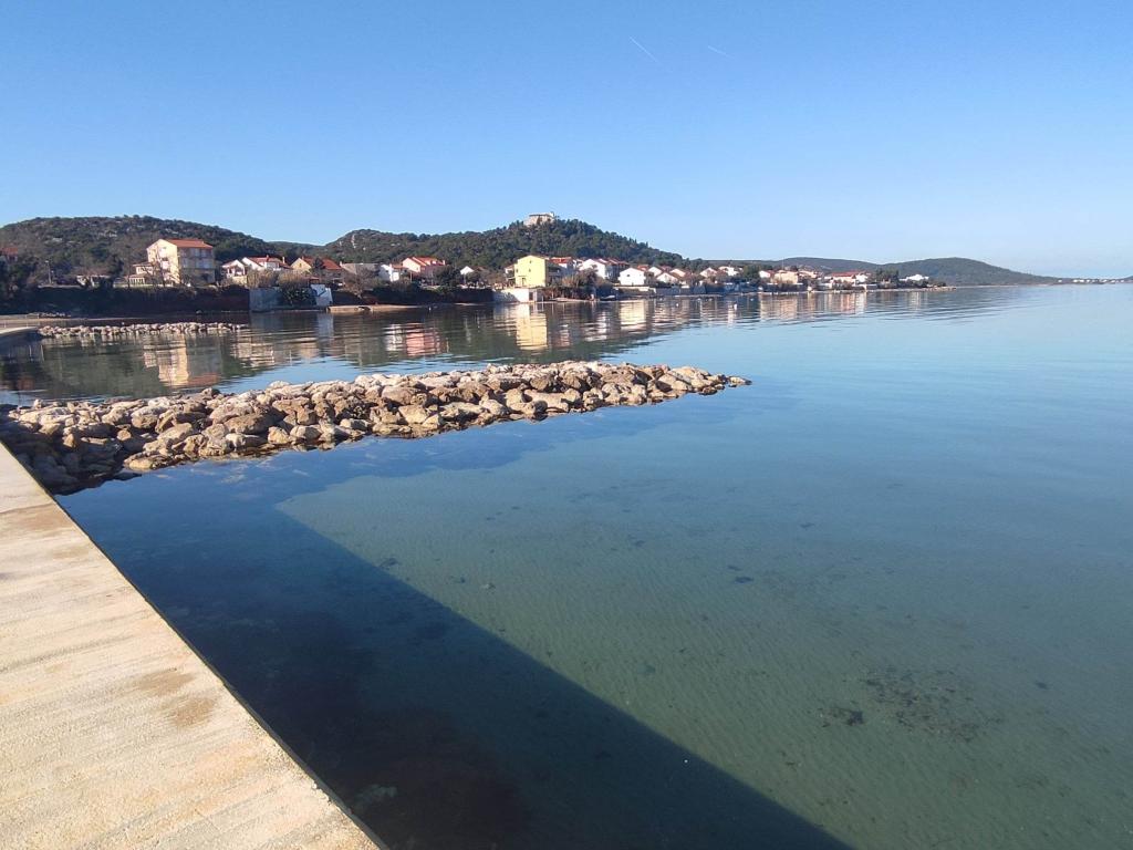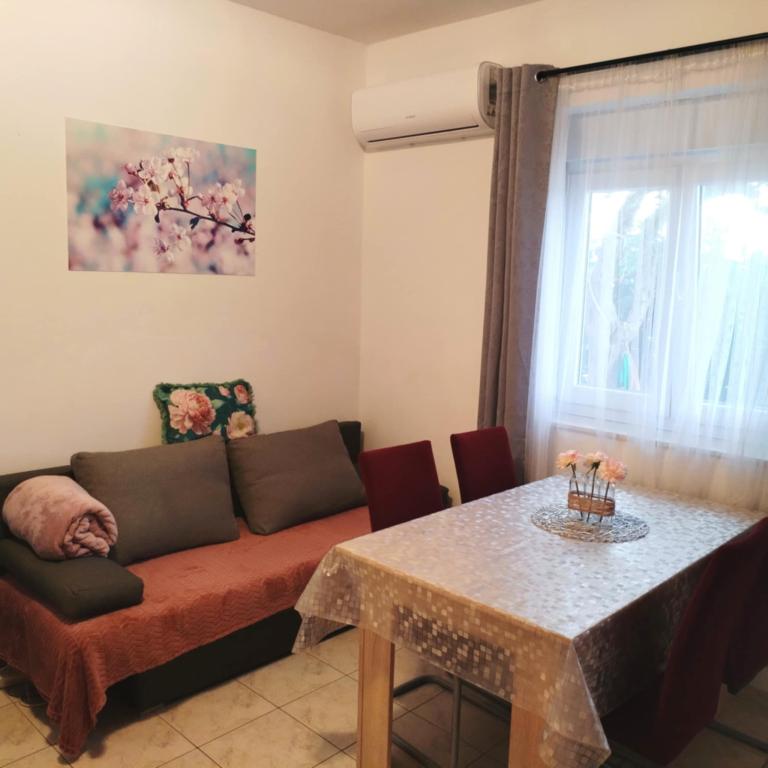 One bedroom apartment in Tkon on the island of Pasman, 20 m from the sandy beach and 50 m from the center of Tkon, is located on the ground floor. It has a room with a double bed for two people and a sofa bed for two people. Bathroom with shower, washing machine, kitchen with oven and dishwasher. The apartment is fully equipped, has TV, internet, air conditioning, parking, grill. It has a terrace overlooking the sea. Near the apartment there are all the necessary facilities, shops, restaurants, taverns, coffee bars, bakery, pastry shop, butcher, pharmacy, clinic. In Tkon, guests can enjoy the numerous sandy beaches in the bays, ride a bike along the bike paths along the island, various events and festivities during the summer and visit the nearby Kornati National Park by organized boat from Tkon. They can also visit the Vrana Lake Nature Park.