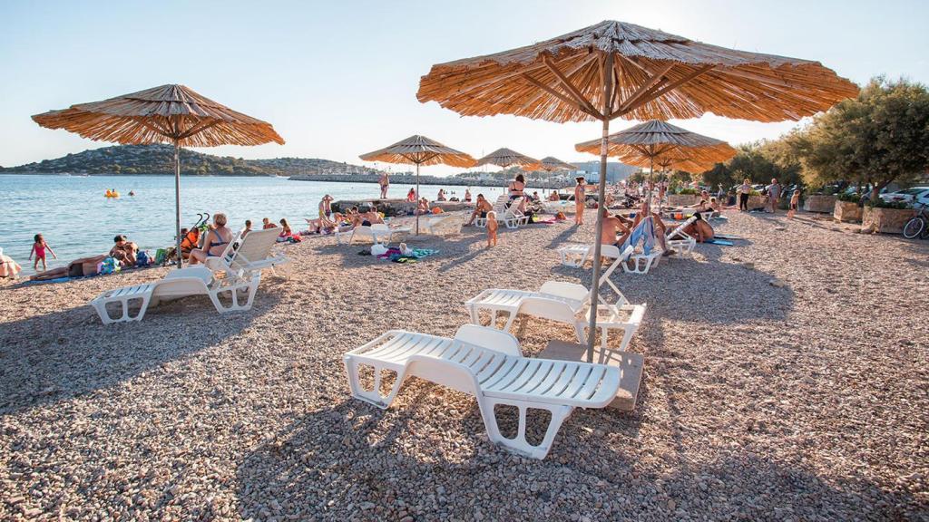 We are renting a charming two-bed apartment located in Tribunj, a picturesque fishing village that rises along the coast, not far from the picturesque Vodice and known for its traditional cargo race. Located on the second floor of a smaller building, this apartment offers a spacious terrace with a beautiful view of the sea and the surrounding landscape, which reaches all the way to Vodice, Šibenik, Prvić and a number of other islands, while the church of St. Nikole shines at night in the distance. Guests have access to air conditioning, parking, and a modern LCD TV/satellite antenna for pleasant evenings of relaxation. The kitchen is fully equipped with a gas stove, a refrigerator with a freezer and all the necessary accessories for preparing and serving food and drinks. The bathroom is comfortable, equipped with a shower cabin and functional sanitary facilities. The price includes tourist tax, use of air conditioning and parking, and an advance of 30% of the price secures the reservation. Tribunj offers beautiful beaches and all necessary amenities for a pleasant stay - shops, ATMs, clinic, pharmacy,