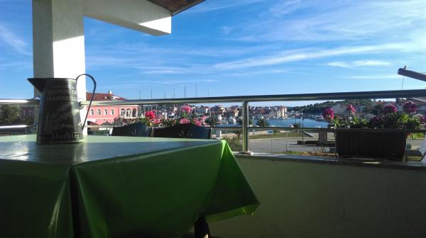 The apartment is located in the center of Tribunj, on the first floor of the house, with a beautiful view of the sea, marina and the old part of town. It consists of two double bedrooms, bathroom with shower, living room, kitchen and dining room. The apartment has a separate entrance and two large balconies. In the vicinity there is the beach, playground, store, post office, bank, restaurants. The ideal choice for lovers of peace and for families with children.