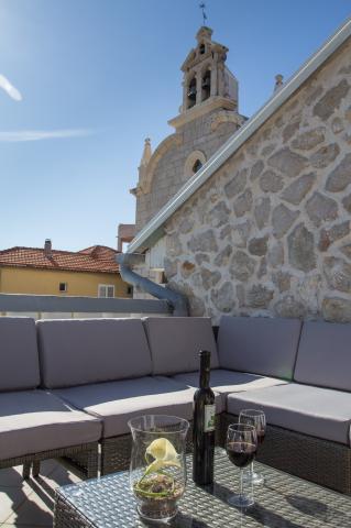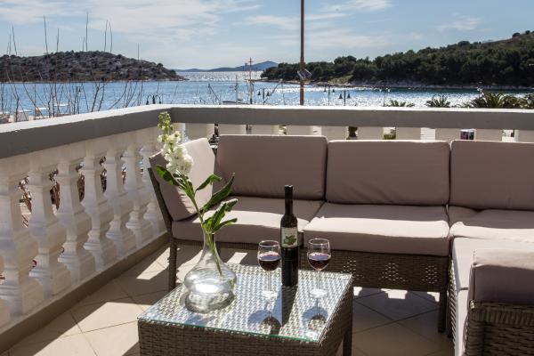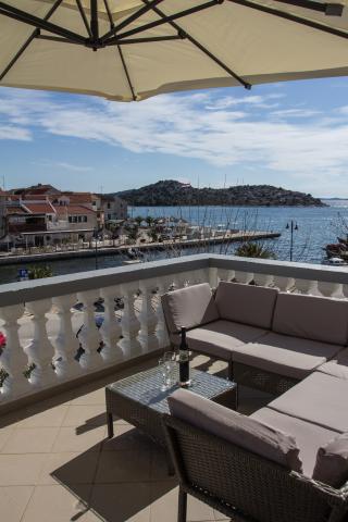 Beautiful stone house in which the apartment, decorated with lots of love and decorated with great attention to detail, so that it makes you feel relaxed and comfortable during your stay. The house is located in the heart of the small fishing village of Tribunj, in the first row. Just a few steps away from the beach, restaurants, cafes, shops and everything else that will make your holiday easier and more comprehensive. The apartment has an area of 70 m² and is designed to accommodate up to 6 people. The ground floor has a spacious living room that is separated from the kitchen bar table, and bathroom, and upstairs are two bedrooms. All rooms offer stunning views of the sea, as well as two large terraces that make this apartment special.