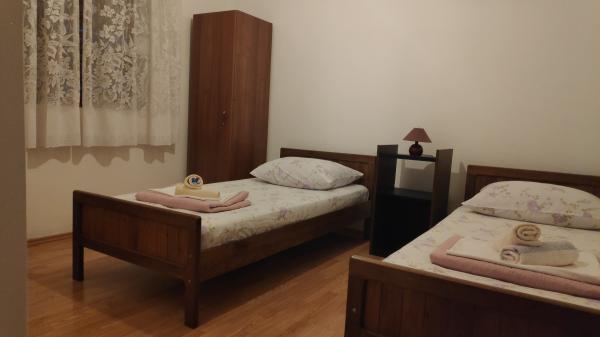 The facility is located in a quiet part of Tribunj, about 200m to the beach and 400m to the center. There is secured parking space and it is possible to use the grill in the yard. Both apartments are the same as the ground floor apartment has a terrace and a balcony on the floor. Each has a kitchen with attached living room, two bedrooms and a bathroom. Both have air conditioning, TV, wireless internet, kitchen with dishes. The price includes the sojourn tax and bed linen change after 7 days.