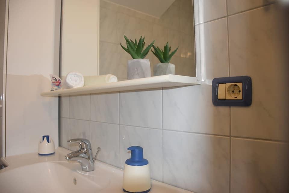 The apartment offers accommodation in a quiet part of Tribunj, surrounded by greenery and olive groves. The street is one-way and there is no big traffic. The apartment is air-conditioned, has 2 bedrooms and a corner sofa bed, fully equipped kitchen (dishwasher, microwave, oven, kettle, coffee maker, mixer) 2 toilets (shower and bathtub) for clothes, dryer, mosquito protection in all rooms, TV in the bedroom and living room, free WIFI, SAT TV. The apartment is air-conditioned. Ironing facilities and iron are provided. The apartment also has two spacious terraces for rest, barbecue and 2 parking spaces.