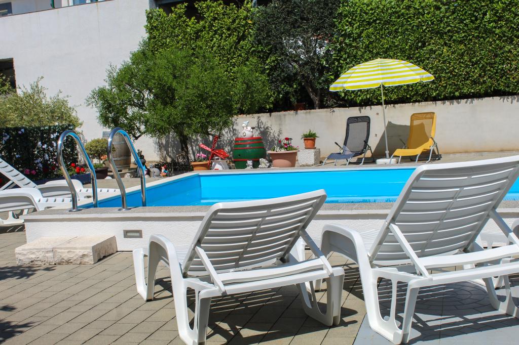 A swimming pool is available to all guests. APARTMENT A1 (air conditioning) - located on the ground floor and consists of a kitchen, two bathrooms, two bedrooms for four people, living room, TV-SAT, WI-FI, a small balcony with a terrace and parking APARTMENT A2 (air conditioning) - located on the first floor and consists of a kitchen, bathroom, one bedroom with a small balcony, living room with a sofa bed for two people, TV-SAT, WI-FI, a large terrace and parking APARTMENT A3 - located on the first floor and consists of a kitchen, bathroom, one bedroom with a small balcony, living room with a sofa bed for two people, TV-SAT, WI-FI, a large terrace and parking
