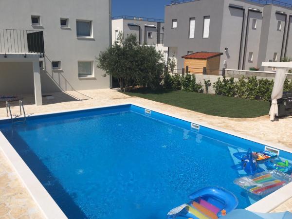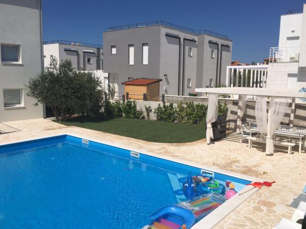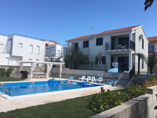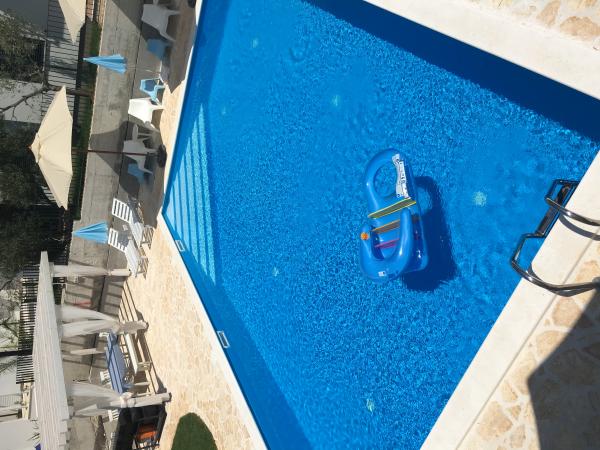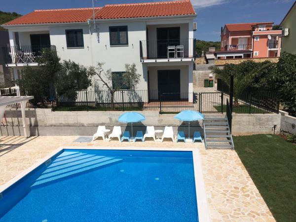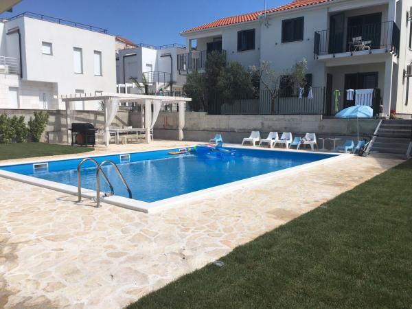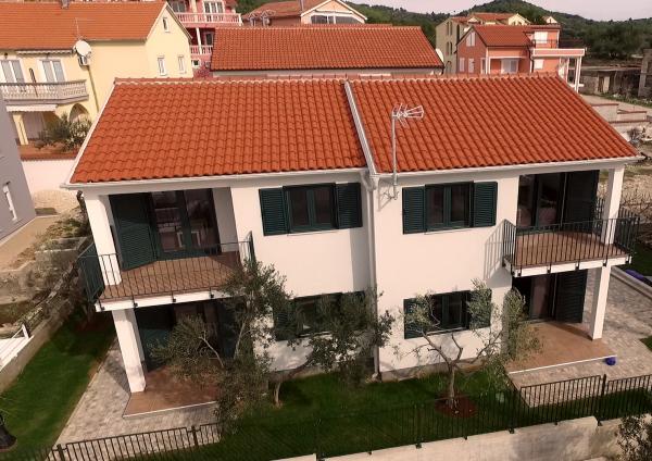 Fully equipped and modern new apartments in a quiet part of Tribunj, near the town, ideal for a carefree holiday. The apartments are ideal for two, but can comfortably accommodate up to four guests. The apartments are fully equipped with everything you need for a carefree holiday - from the kitchen, bathroom, washing machine, dishwasher, bed linen, towels and outdoor common area with a pool, deck chairs, barbecue and garden kitchen. Due to the division of the units (two separate units, each with two apartments in each), suitable for families or society of 8 members who can stay in the same unit with the same entrance in two separate apartments. It is possible to rent the whole house that can host 16 people. The apartments are located a few minutes walk from the center Garade in which the market, shops, pharmacy, health center, cafes, restaurants, a park and marina, and 7 minutes walk from the beautiful beach of Tribunj. Area Tribunja is fantastic because of its location as it is situated close to the town, Sibenik,