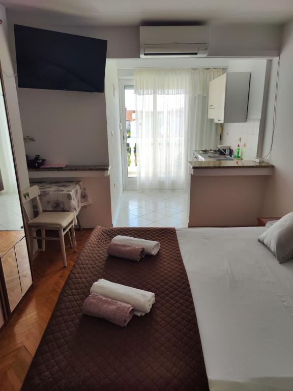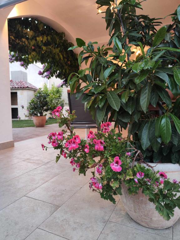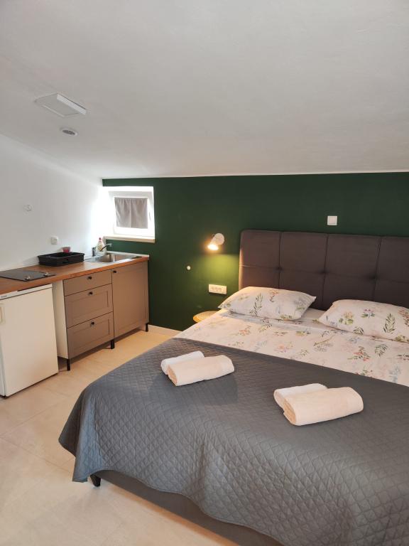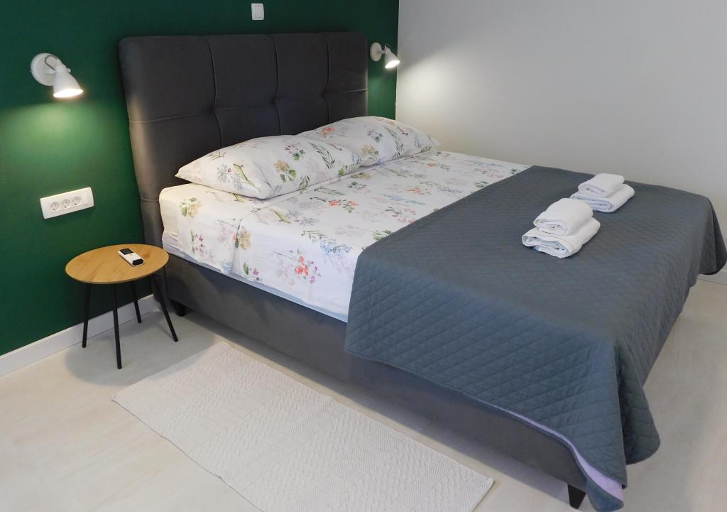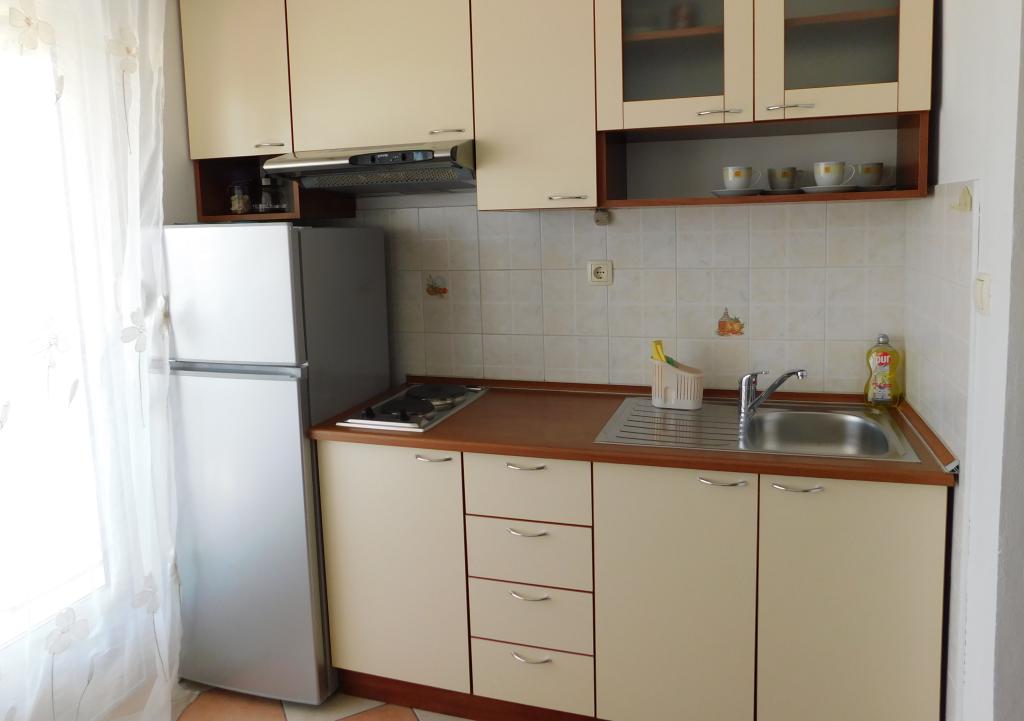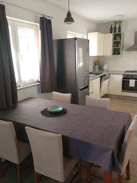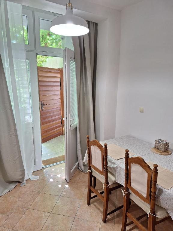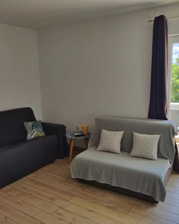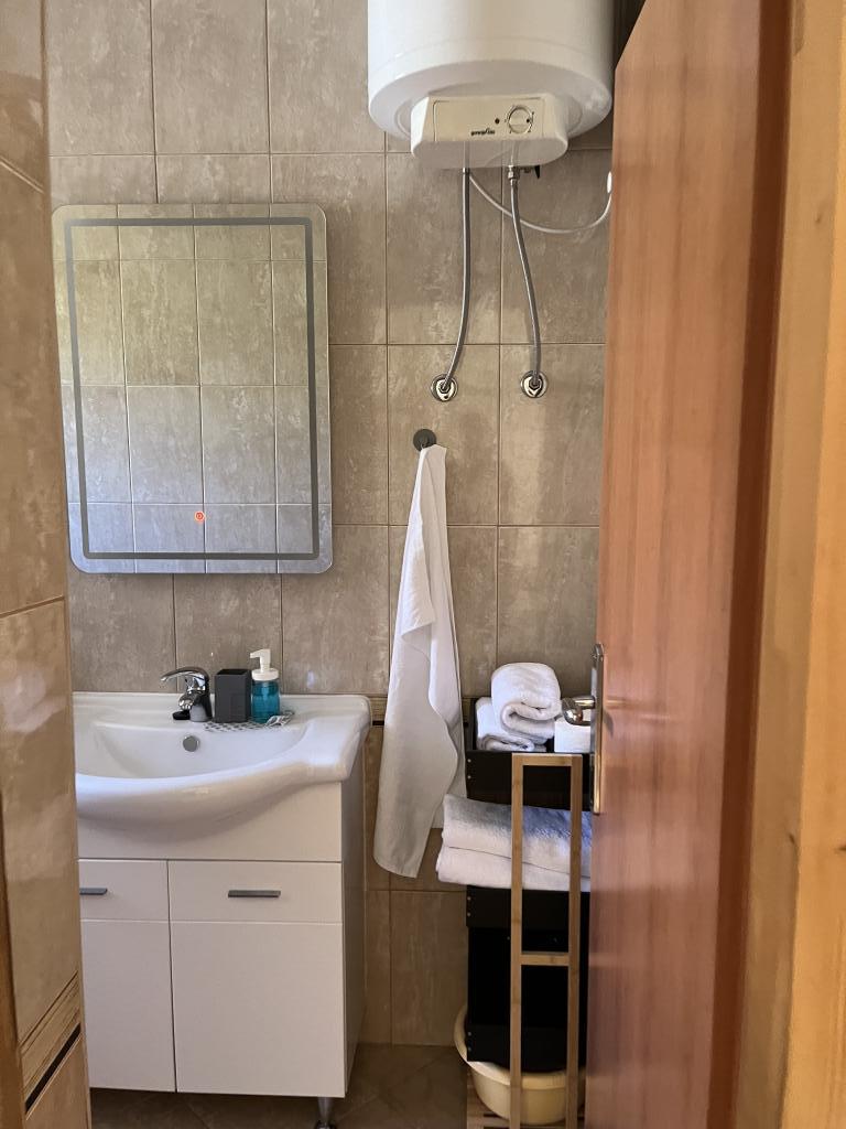 The owners are hospitable, kind, approachable. They offered us lemonade when we arrived. The apartment is clean, tidy, just right for 2 people. Clean bed linen, clean towels and a clean bathroom. The apartment is covered with vines for shade, and has a separate terrace (special wooden door), so privacy is excellent. Plodine, Ultra and Konzum are only a 5-10 minute walk away. On the way to Plodin, there is Ultra, which is a 2-minute walk away. The town center is also only a 5-minute walk away, as are the beaches, which are beautifully decorated. It was quiet in the apartment, no one created noise and disturbance, and it is a really great place to rest. All in all, an incredibly good apartment with even better owners. 10/10