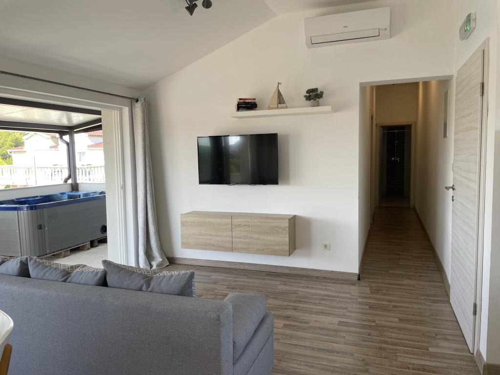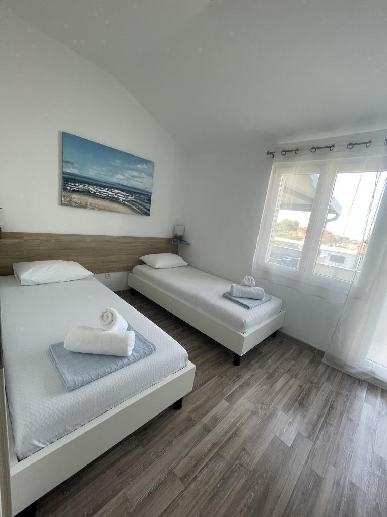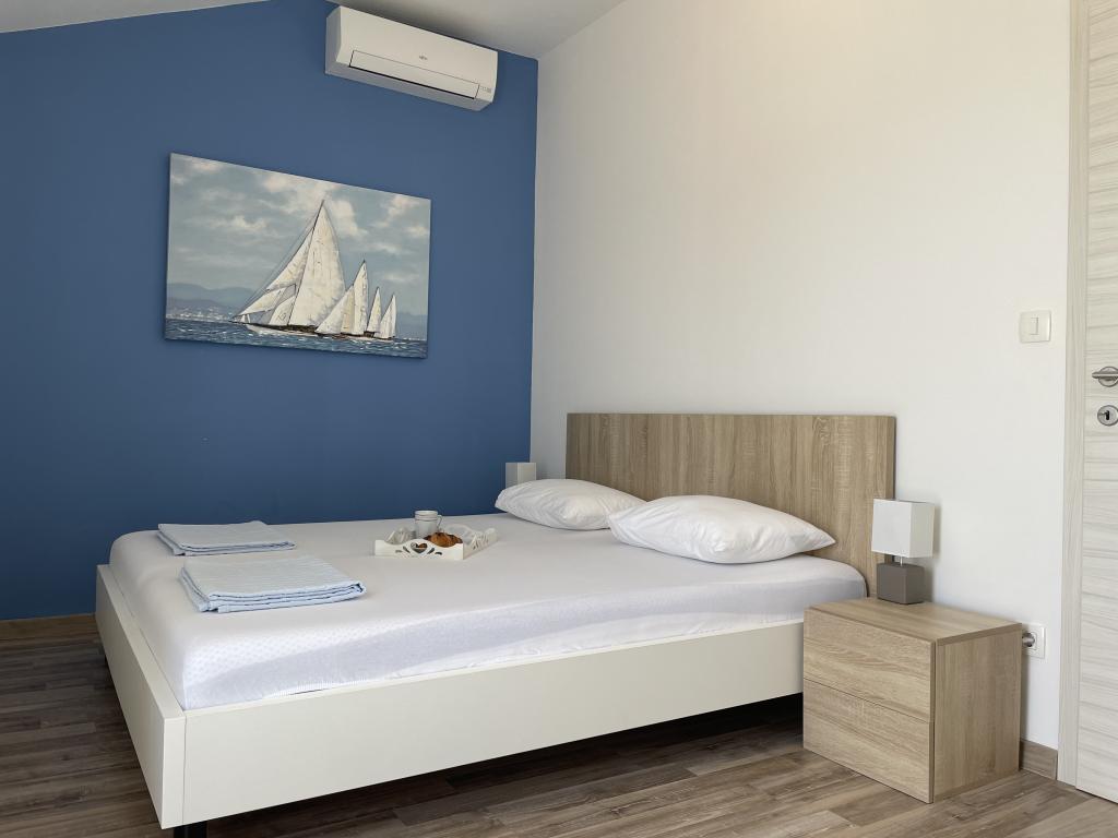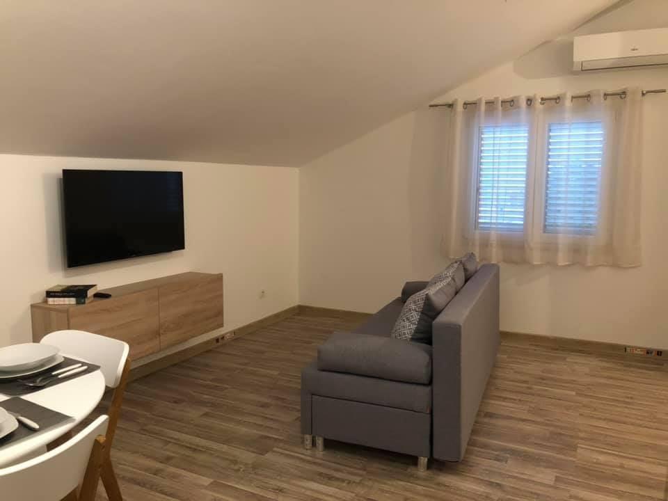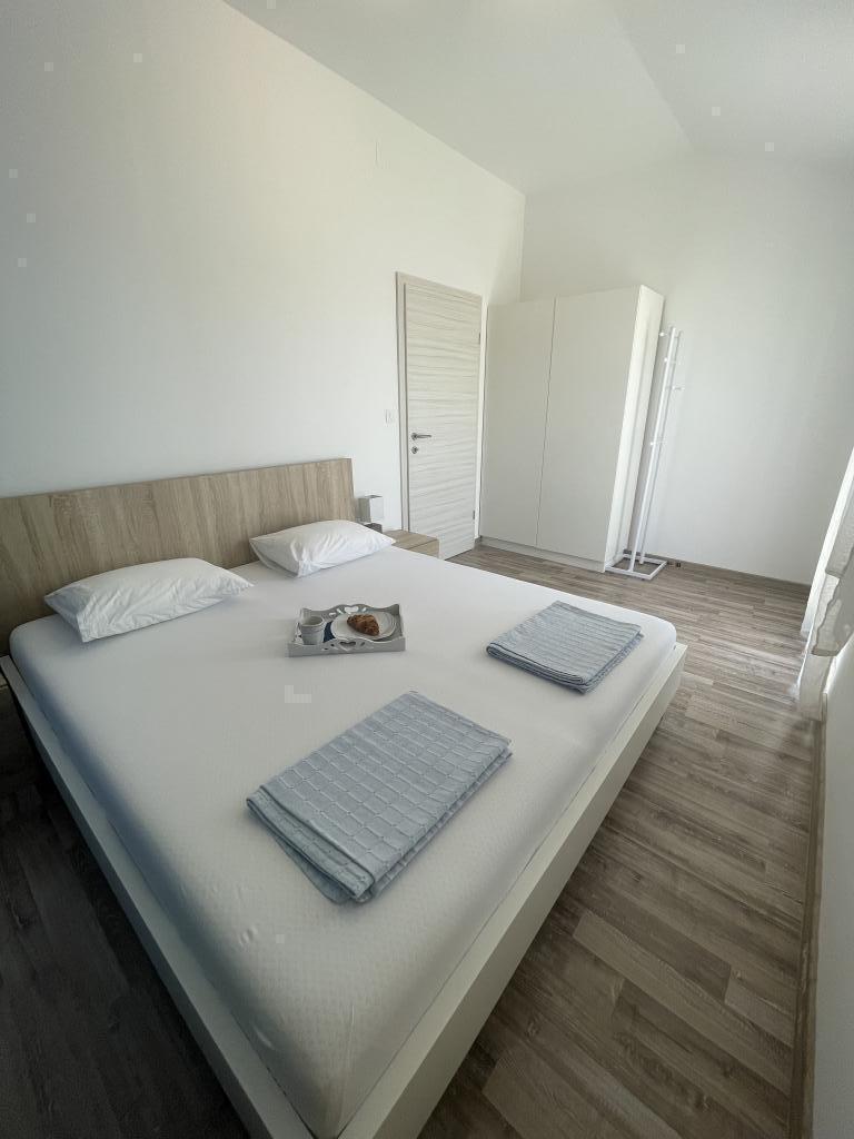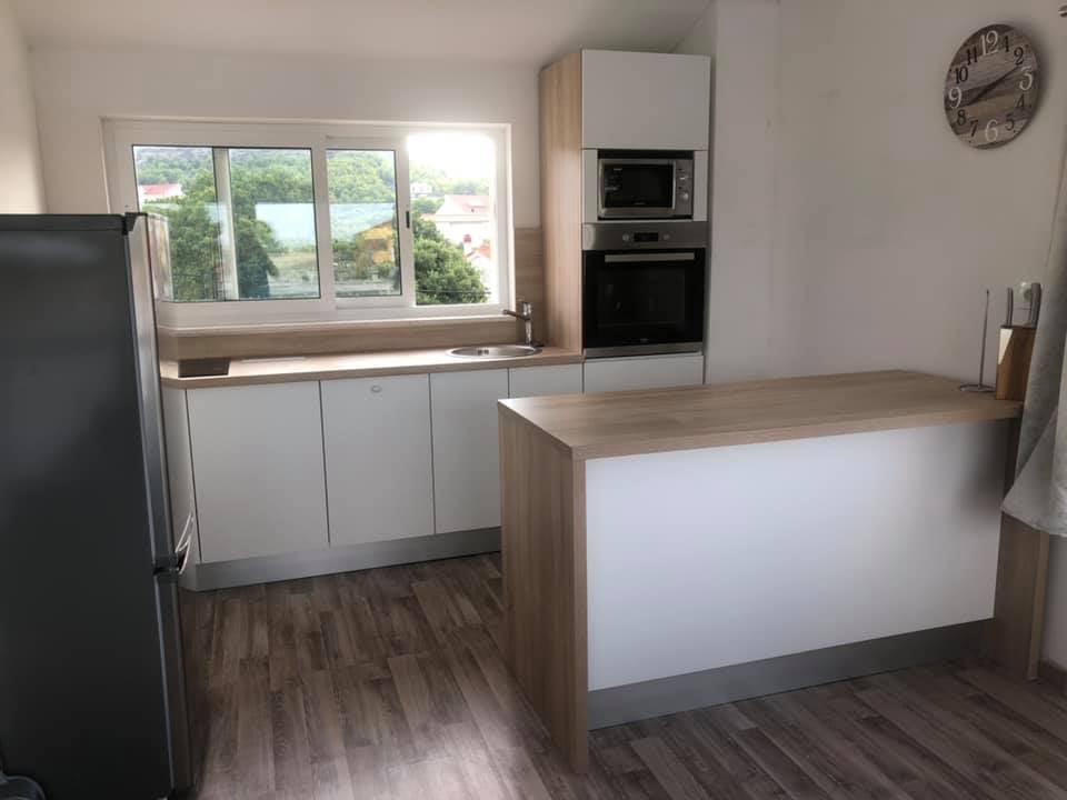 Fully and modernly equipped apartments in a quiet area, located only 300m from the beach with many facilities. The apartments are located on the second floor of the family house, in the fenced yard you can enjoy a covered area for socializing with a summer kitchen and grill. Private parking is located in front of the yard. There is a bus stop 50m from the house, and the first shop 200m from the house. The town center is 800m away, you can reach it by road or by the promenade that stretches along the sea. We love animals, but we are not pet friendly.