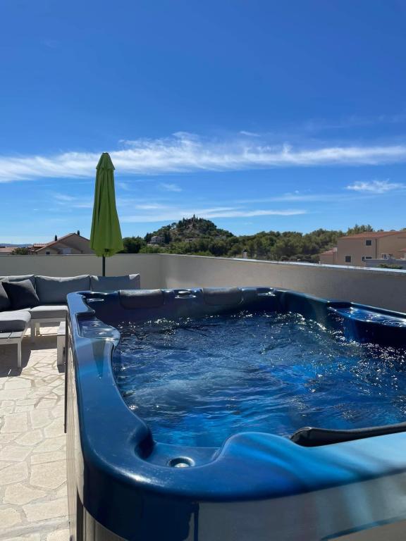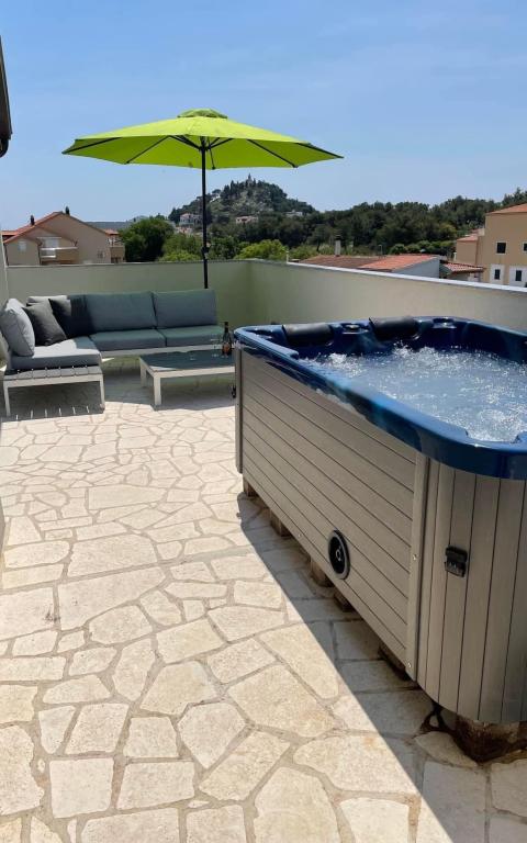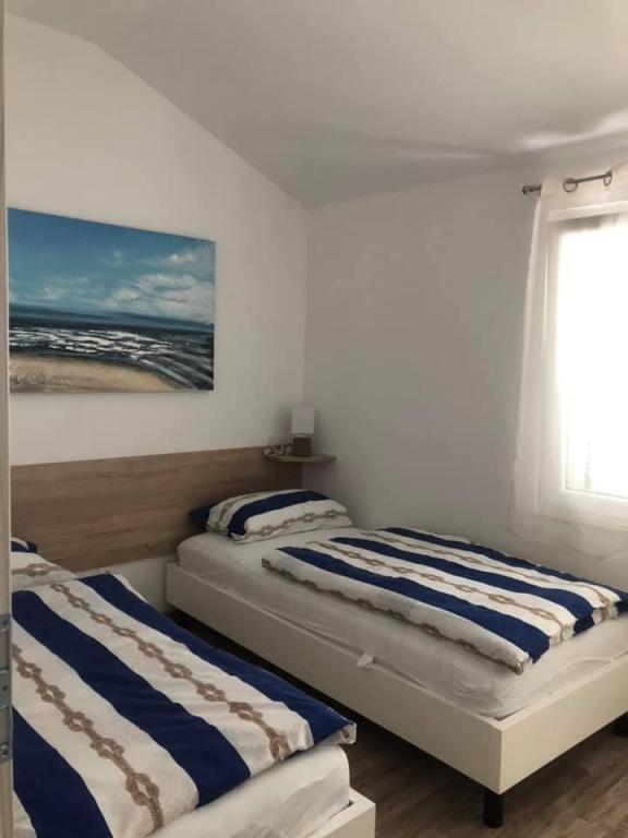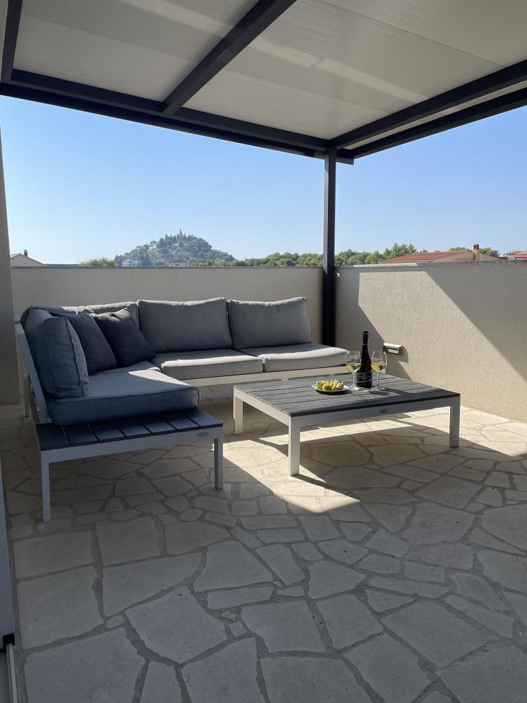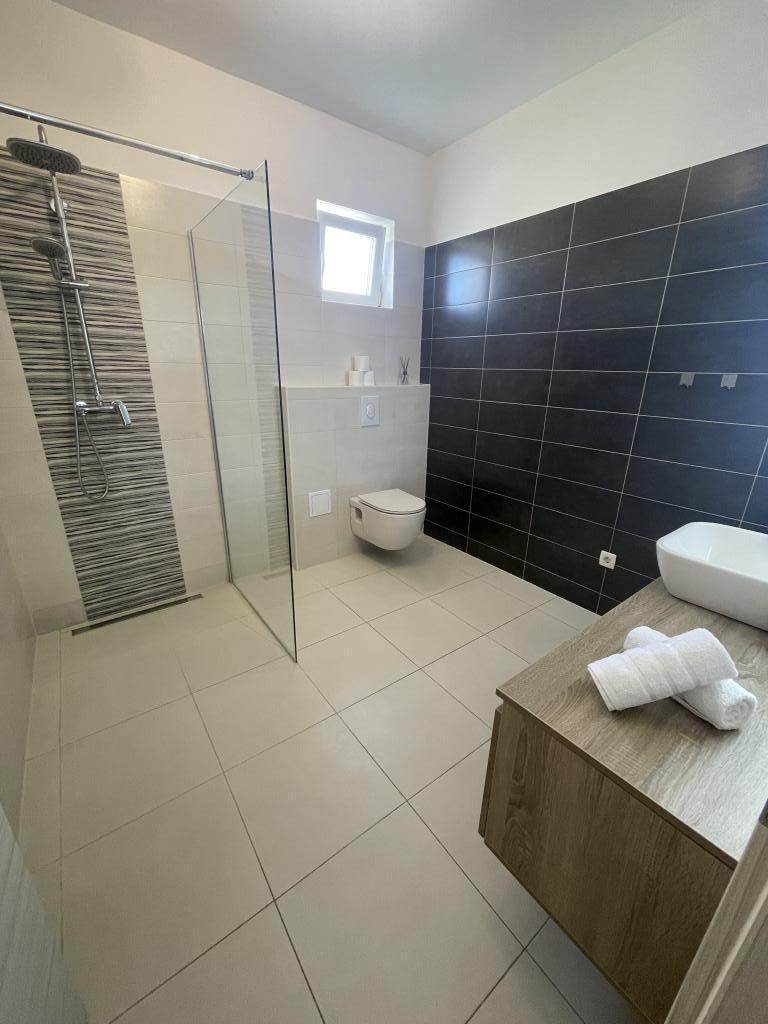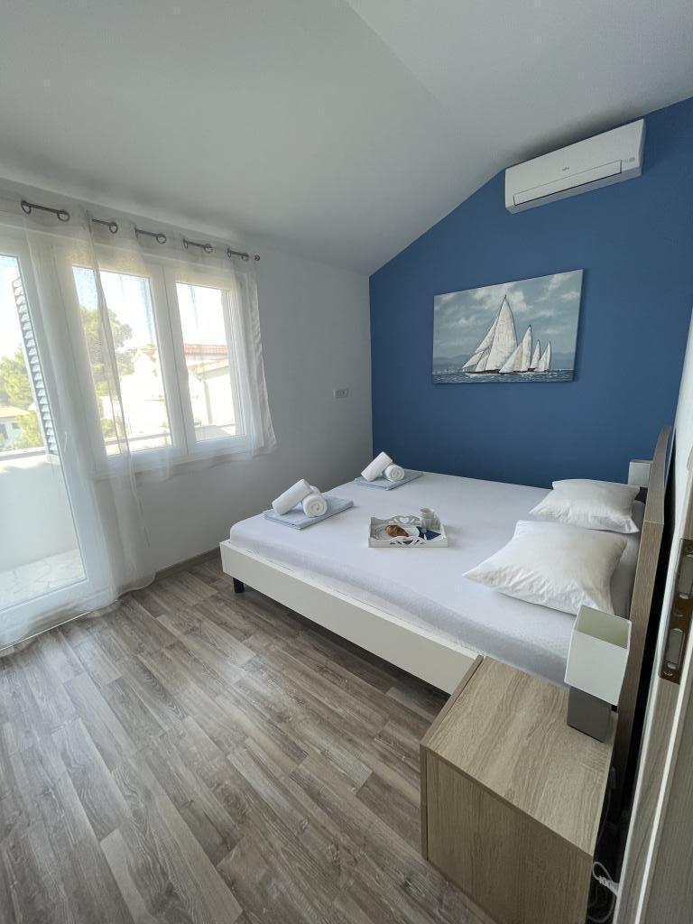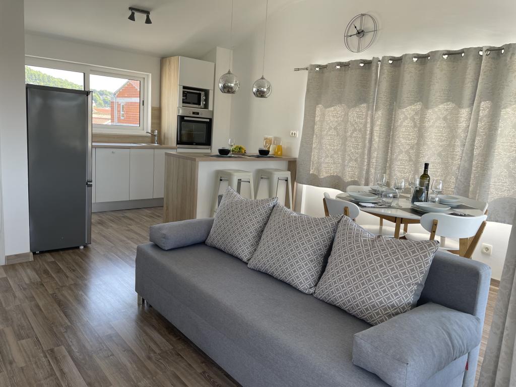 Fully and modernly equipped apartments in a quiet area, located only 300m from the beach with many facilities. The apartments are located on the second floor of the family house, in the fenced yard you can enjoy a covered area for socializing with a summer kitchen and grill. Private parking is located in front of the yard. There is a bus stop 50m from the house, and the first shop 200m from the house. The town center is 800m away, you can reach it by road or by the promenade that stretches along the sea. We love animals, but we are not pet friendly.