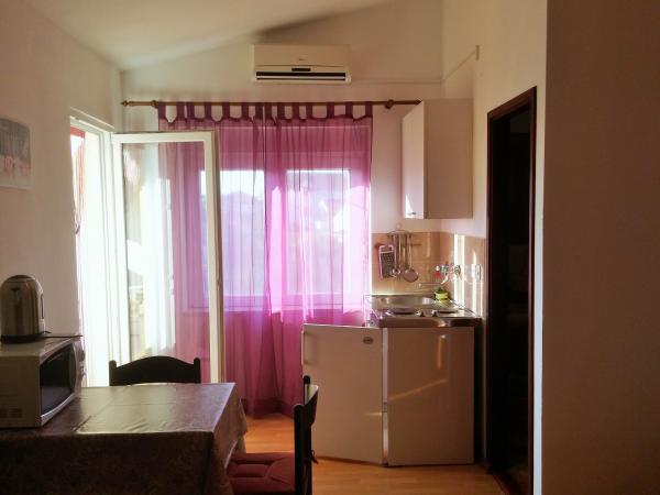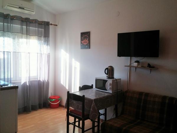 Everything was great. We just rented a room and had everything we needed. Clean and tidy. Fridge, TV, air conditioning, terrace ... Close to both the beach and the town center. Recommendations. Ps, many thanks to Mrs. Nikolini on everything !!