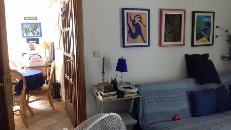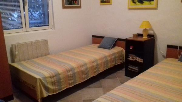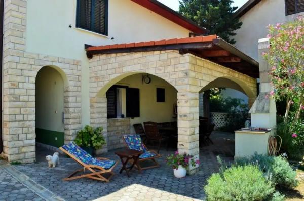 Apartments Lara and Sara for rent. Apartment Lara is a three bedroom with a large garden, garden and parking. The apartment is located on the ground floor, surrounded by two terraces and a garden. It consists of two bedrooms with two beds, living room with sofa bed and TV, bathroom with shower, kitchen with dining area which opens onto a covered spacious paved terrace with a garden that provides a wonderful relaxing atmosphere and gives freshness in the warm summer months. Apartment Sara has two bedrooms with a large partially covered terrace and parking. The apartment is located on the first floor. It consists of a bedroom with two beds and a TV, a living room with two sofa beds and a TV, a bathroom with a shower and a kitchen with a dining area.