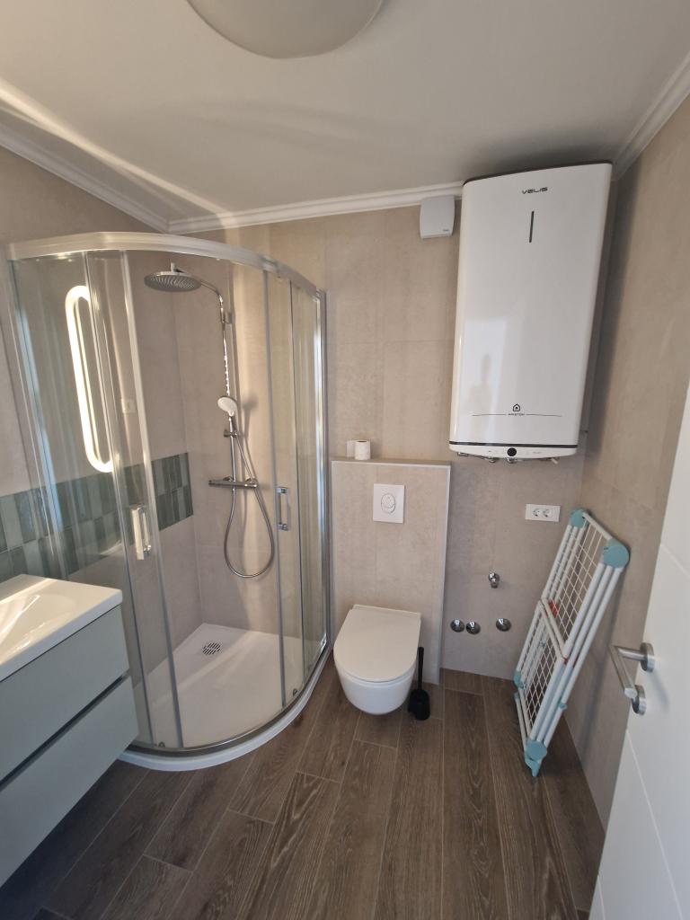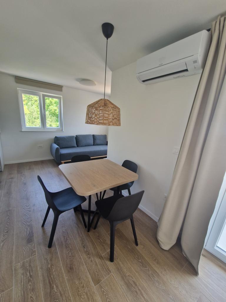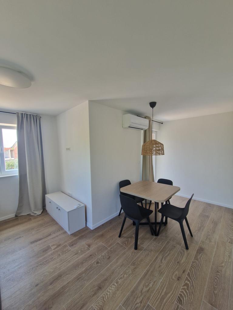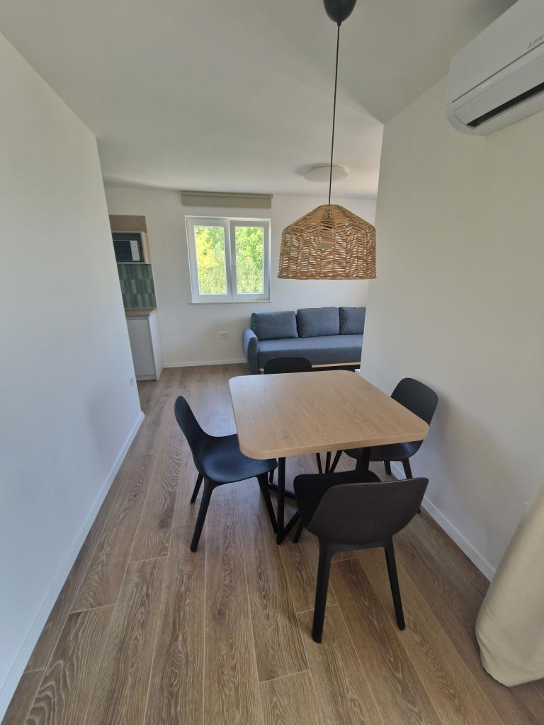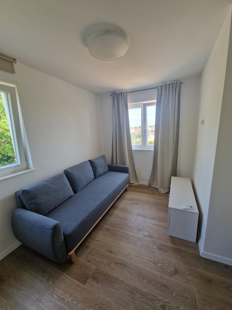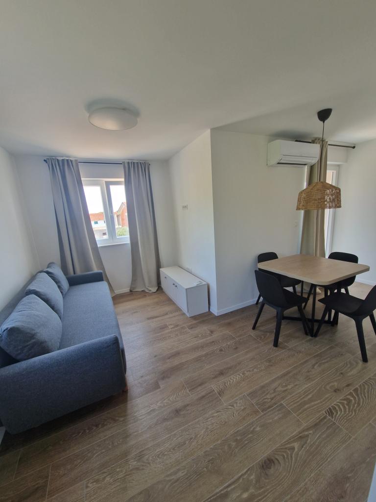 Apartments Tribunj Cvitan are fully and modernly equipped. The facility is located in a quiet street in Tribunj (Sovlje). The apartments are on the 1st floor, which is accessed by a separate external staircase. Parking is provided for apartment guests, and the entrance to the facility is fenced with an automatic entrance gate. The facility is located a 5-minute walk from the sea and next to several good nearby beaches in the area, and the closest to the facility is the Sovlje Beach. The apartments have one room with a double bed, and one extra bed in the dining room. In the bedroom, there is a bedside table with lighting next to the bed, and large wardrobes. The kitchen is equipped with all necessary elements, including dishwashers. Also, the apartments have large semi-covered balconies that are facing east most of the day from dawn, so you can relax in the sun on the balconies almost all day. The bathrooms are modernly decorated with shower cabins. The apartments have TVs in the dining rooms and free Wi-Fi