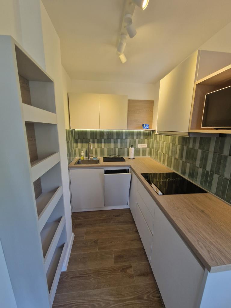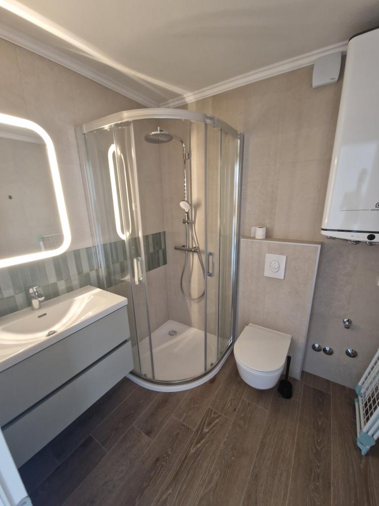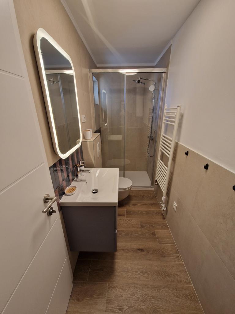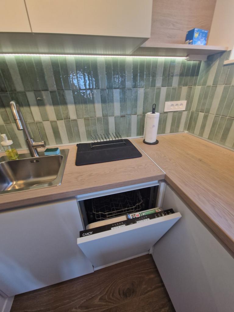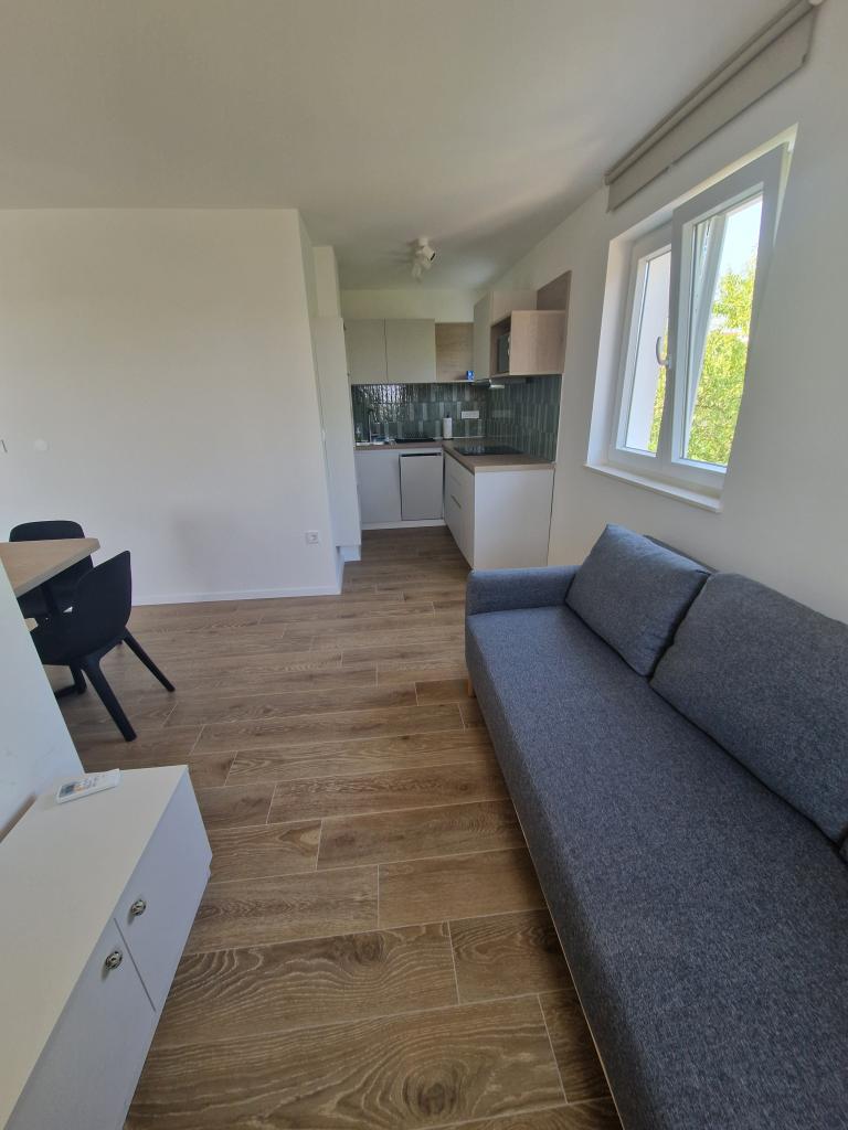 Apartments Tribunj Cvitan are fully and modernly equipped. The facility is located in a quiet street in Tribunj (Sovlje). The apartments are on the 1st floor, which is accessed by a separate external staircase. Parking is provided for apartment guests, and the entrance to the facility is fenced with an automatic entrance gate. The facility is located a 5-minute walk from the sea and next to several good nearby beaches in the area, and the closest to the facility is the Sovlje Beach. The apartments have one room with a double bed, and one extra bed in the dining room. In the bedroom, there is a bedside table with lighting next to the bed, and large wardrobes. The kitchen is equipped with all necessary elements, including dishwashers. Also, the apartments have large semi-covered balconies that are facing east most of the day from dawn, so you can relax in the sun on the balconies almost all day. The bathrooms are modernly decorated with shower cabins. The apartments have TVs in the dining rooms and free Wi-Fi
