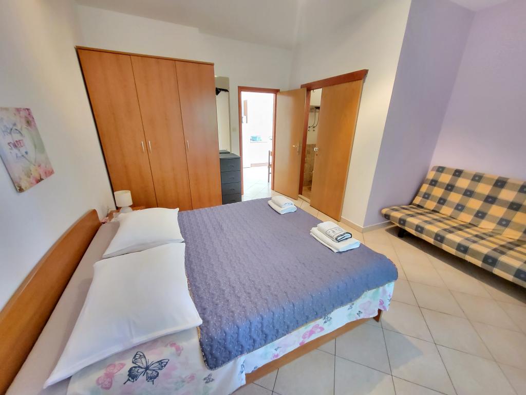 Welcome to Vinka apartments in the quiet town of Tribunj. Located in a quiet location, our apartments are only a 2-minute quick walk from the sea beach Bristak and only 300 meters from the bustling city center. We offer five different apartments, each equipped with amenities such as parking, satellite TV, air conditioning and wireless internet to ensure a pleasant stay. Two of our apartments are on the second floor, two on the ground floor and one on the first floor. We have three two-room apartments and two one-room apartments. Each apartment has a fully equipped kitchen, a toilet and a balcony or terrace for relaxing. The apartments on the second floor offer a beautiful view of the sea, the islands and the surrounding landscape, while the apartments on the ground floor are surrounded by the greenery of our garden. From our Vinka apartments, you can reach the center of Tribunj via a beautiful path. In the immediate vicinity you will find various taverns and restaurants that serve delicious dishes of Dalmatian and Mediterranean cuisine, complemented by excellent local wines that will surely delight your taste buds. Experience the perfect combination of comfort and practicality in Vinka apartments, your home away from home.