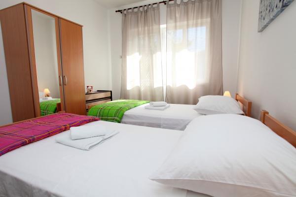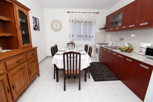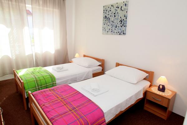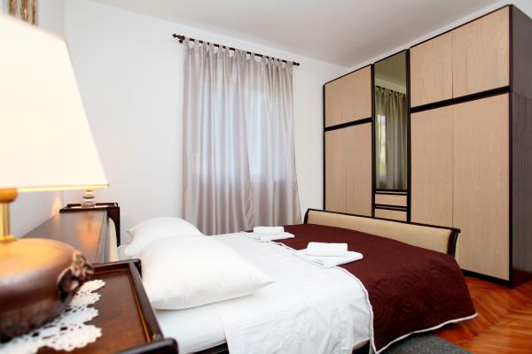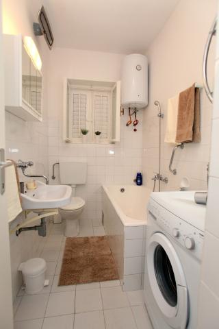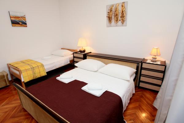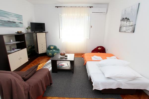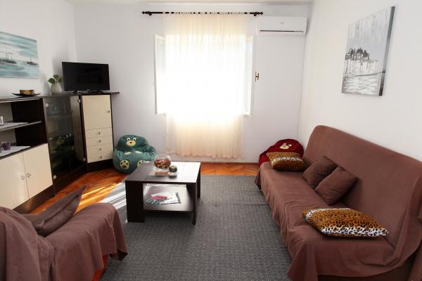 The apartment is 80 m2 in size, comfortable and surrounded by greenery and is located on the ground floor of a family house near the old town center of Trogir (about 10 minutes walk). The apartment is fully equipped and consists of two bedrooms (one triple and one double), kitchen, living room, bathroom and small WC. In the living room there is an extra bed for two persons (click-to-beak). The apartment also has a balcony with table and chairs and a terrace in front of the apartment with a table for a pleasant stay in the shade. Behind the building is a small barbecue and a free parking space for two cars. The apartment is air-conditioned. The new gravel beach is about 500 m away from the apartment. The most famous Trogir sandy beach is two bus stops or 1 km from the apartments. From the Trogir coast, every 20 minutes, at affordable prices, you can take a taxi to the most famous beaches in the vicinity of Trogir.