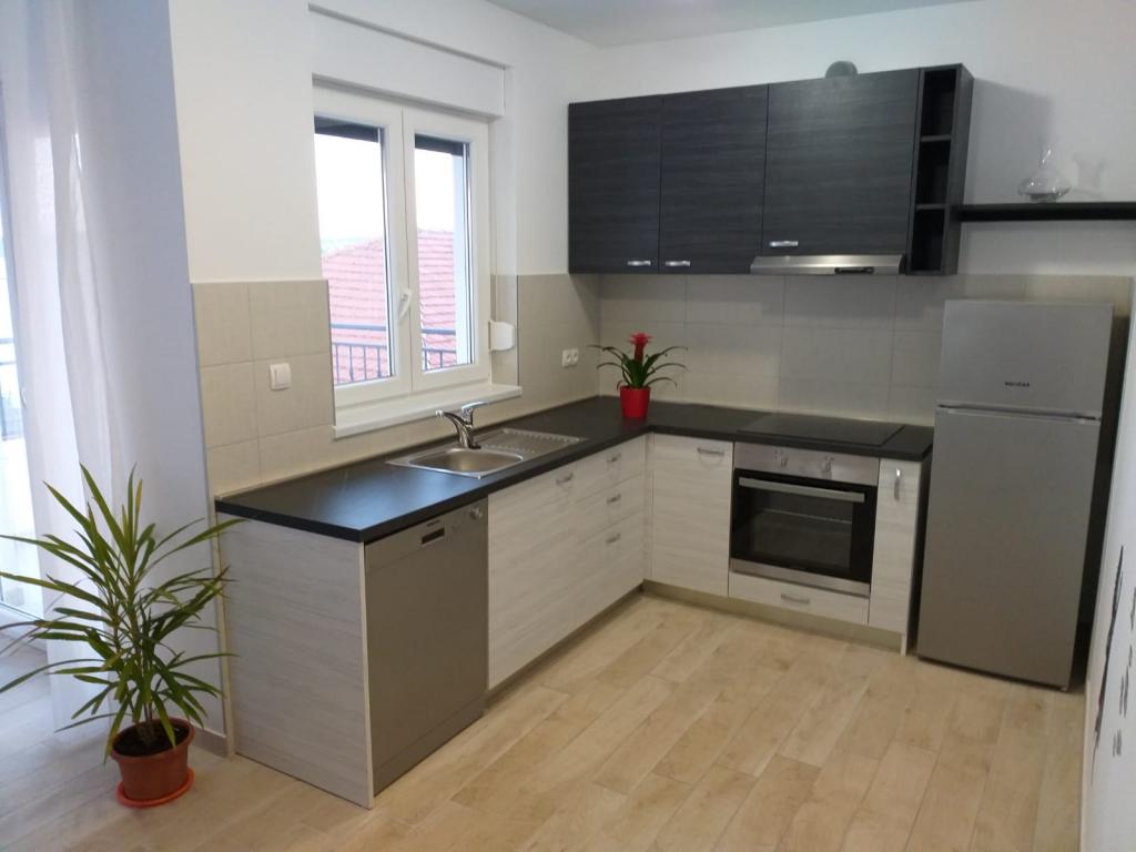 Modernly furnished apartment located in a quiet area of Trogir, only 500 m from the city center, bus station, taxi station, green market, fish market; supermarket and post office are only 100 m from the apartment. The terrace of the apartment offers a beautiful view of the old part of the city, which contributes to a wonderful relaxation with coffee or a drink on vacation in our apartment. The apartment is air-conditioned, wi-fi, fully equipped kitchen with dishwasher, which greatly facilitates the minimum stay in the kitchen, dining room, living room with extra bed 200160 for 2 persons, bathroom with washing machine, double room ... parking.