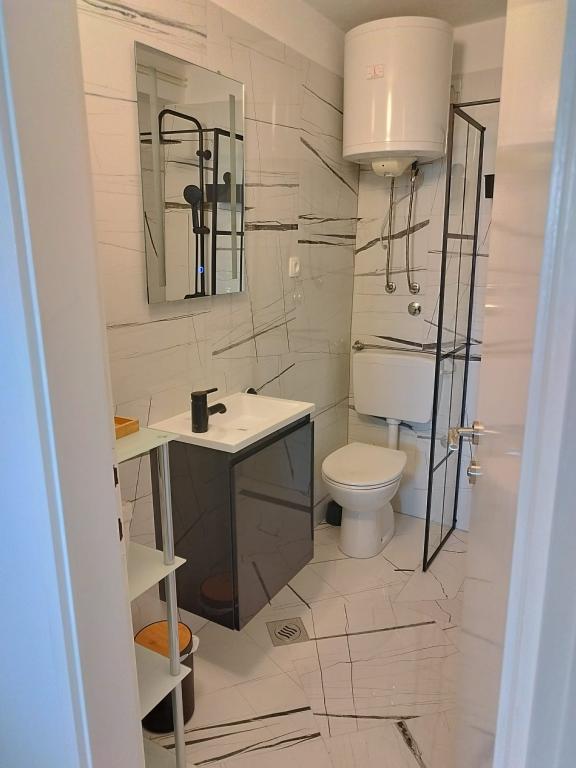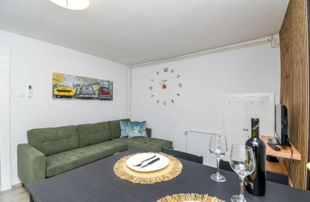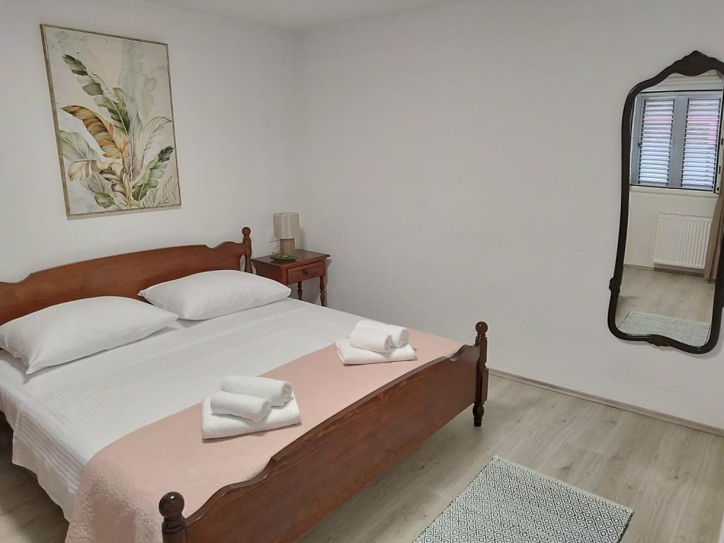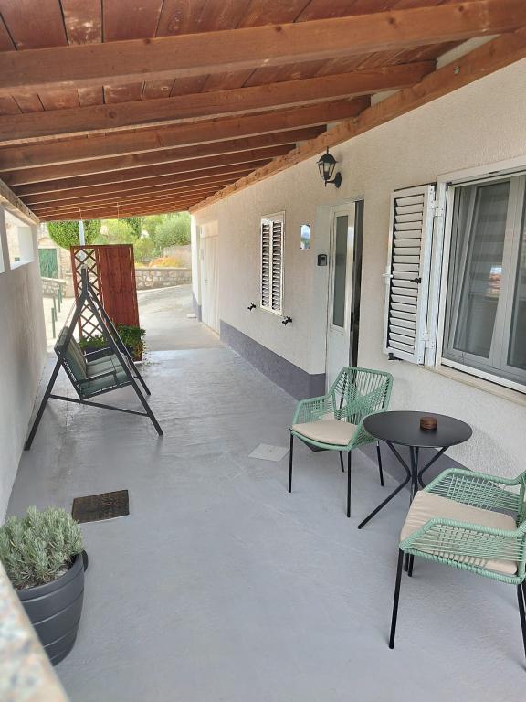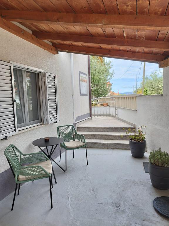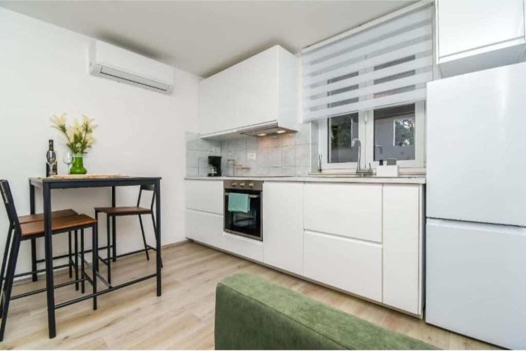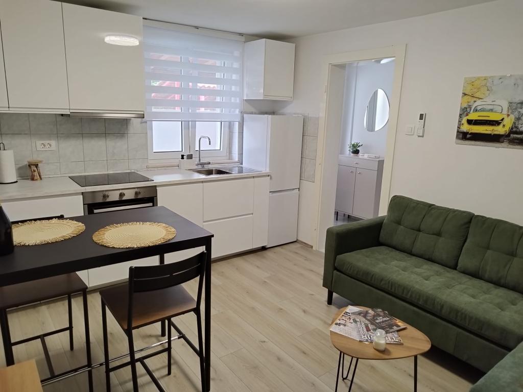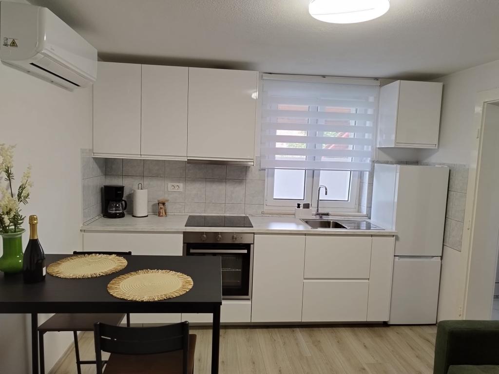 Welcome to Apartment Žunta. The apartment is located just a 5-minute walk from the UNESCO-protected historic center of Trogir. The apartment features a fully equipped kitchen with a dishwasher and a coffee machine. A bathroom with a shower and a hairdryer, and a separate spacious bedroom with a king-size bed. In front of the apartment there is a terrace for relaxing with a swing. We are in a very good location due to the quiet neighborhood, and we are very close to the city center, attractions, supermarkets, the airport and beaches, which are many nearby. The accommodation offers free private parking, free WiFi throughout the property and heating/cooling with air conditioning.