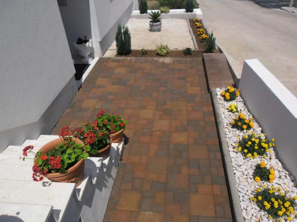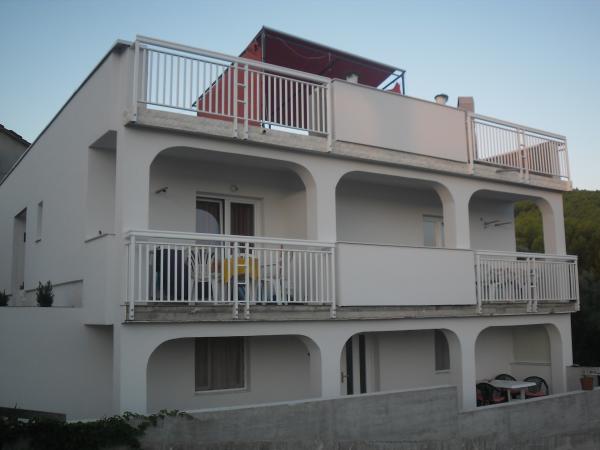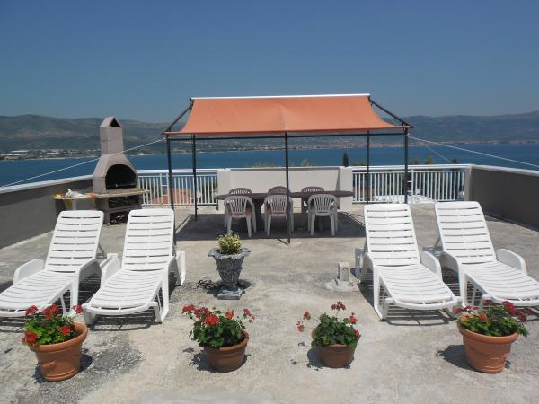 Apartment Knezevic are located in Arbanija -Ciovo! The house has three apartments and can accommodate up to 10 people. All the apartments are very nicely done and has a terrace, air conditioning, internet, parking, complete kitchen, satellite, etc.! The house is situated in a very quiet place, and boasts a large terrace of 130m2 with stunning views of the sea and which will rarely find! The sea and the beach have a maximum of 3 minutes walk from the shops and restaurants a 5 minute walk! The city of Trogir is 5 km and 25 km to Split where you can come by bus or by boat. The first national park is approx 50 km. Ciovo-Trogir and Split offer much more beautiful, and especially the city of Trogir, which simply can not describe, but you have to experience!