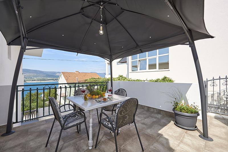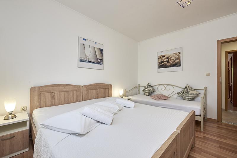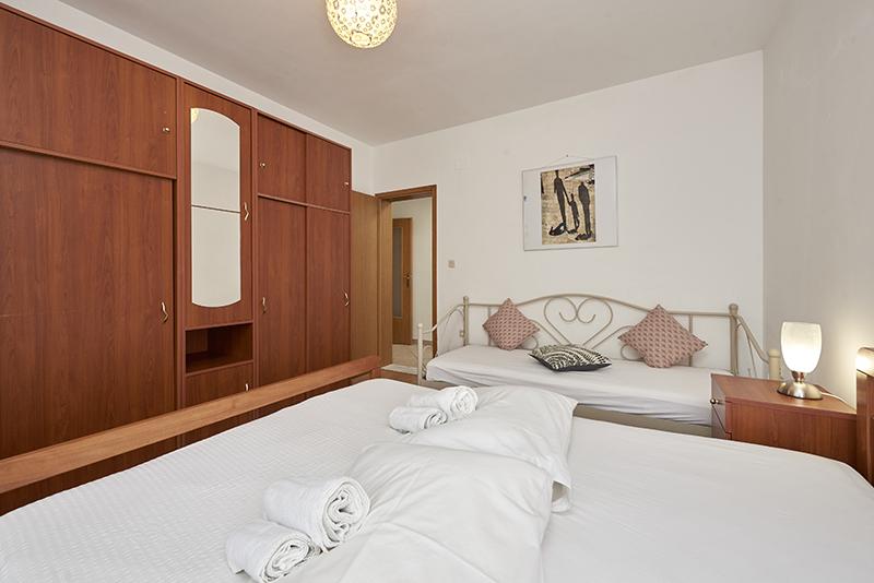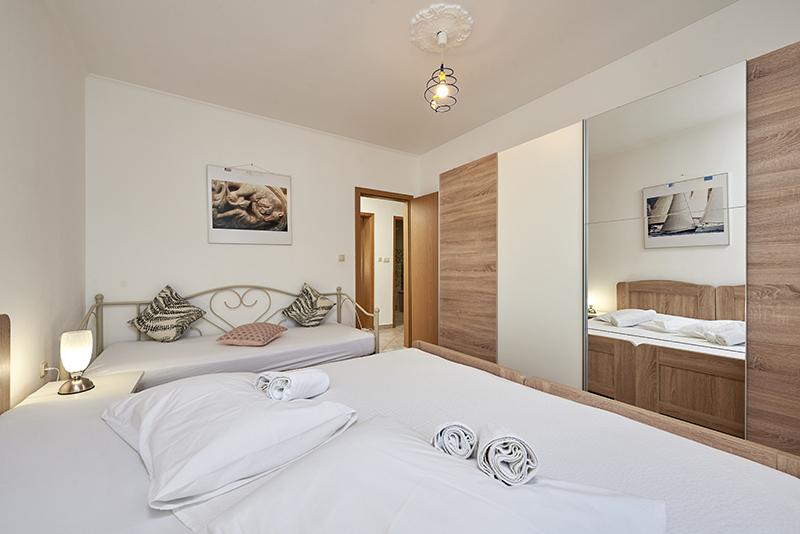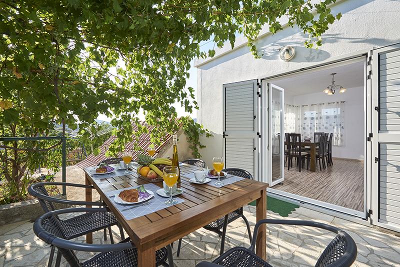Apartments Ugrina are located in the beautiful Mediterranean village of Mastrinka on the island of Čiovo. The house has two apartments for rent, located on the same floor. One apartment has one bedroom and the other has two bedrooms. A total of 12 people can stay. There is space for three cars in front of the house. The apartments are fully equipped. The apartments offer a direct view of the sea. Each apartment has an outdoor terrace with a barbecue. The house is well connected to the mainland. The island of Čiovo is connected to the mainland by two bridges. The old bridge connects it to the city of Trogir, which is on the UNESCO World Heritage List. The new bridge connects it to the mainland and is the closest route to Split airport. The city of Split is 25 kilometers away, and Diocletian's Palace in Split is on the UNESCO World Heritage List. Neighboring towns are Žedno, Arbanija and Okrug Gornji.