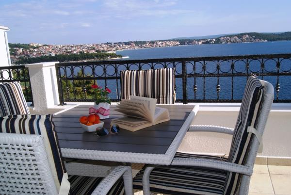 Balan Apartments are located only 100 meters from the beach and 10 minutes walk from the town of Trogir, which is listed on UNESCO's World Heritage List. The facility is surrounded by greenery and offers accommodation units are self-catering accommodation with air conditioning, free Wi-Fi and a balcony or terrace overlooking the sea. All accommodation units are equipped with satellite TV, a fully equipped kitchen or kitchenette with a dining area and a private bathroom. Apartments also have a living room with a sofa bed. Exuberant and carefully tended garden apartment Balan has barbecue facilities and offers a view of the sea. Shady seating area invites you to relax. Pebble beach and bus station are 500 meters away. The lively center of Trogir are many restaurants serving local specialties and bars and shops. Split Airport, from which it is possible to arrange a shuttle service to the apartment, located 6.5 kilometers. The ferry port of Split, where you can take frequent lines to surrounding islands, located 29 km. Guests can use the free public parking near the building.