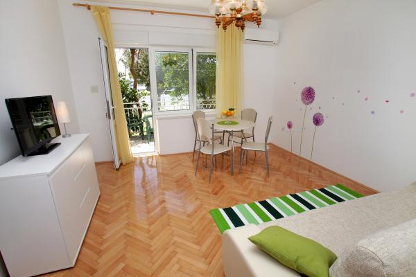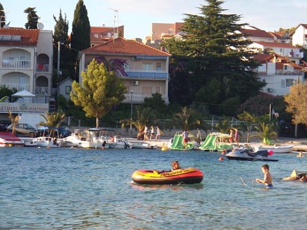 Apartments Bareta Apartments are located in Okrug Gornji on the island of Ciovo, only 2 km from Trogir. The apartments are overlooking the beach, making it the best choice for family holidays. The apartments are close to shop (50m), restaurant (50 m), beach bars, pharmacist (500m), water sports facilities (50m), diving center (2 km), and airport (8 km). Air-conditioning and wifi are included in the price. Guests can use garden and grill, berth for boat is available upon request. Your hosts can organize a traditional dinner for their guests, and offer some homemade products (such as olive oil, wine, brandy, home grown vegetables…) Welcome!