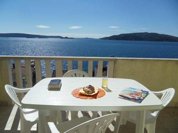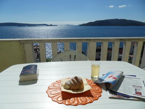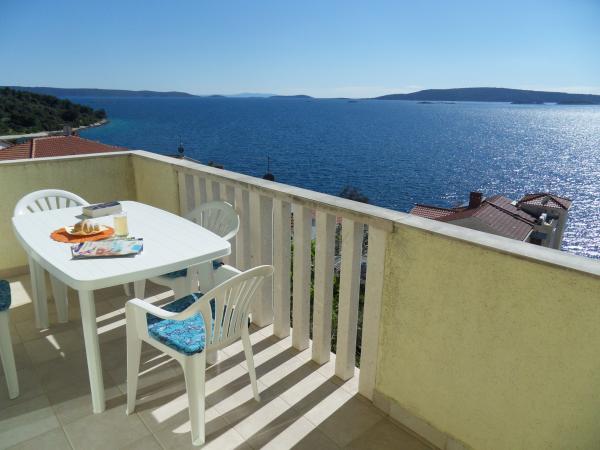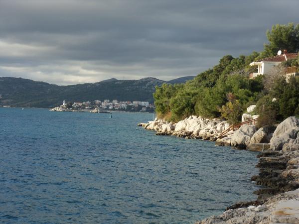 Fully equipped and modern apartments villas Blue Sensation, with a view of 180 degrees on a deep blue (sea), situated in a green oasis of Ciovo in Okrug Gornji, only 80 meters from the sea. Nearby, in a pine forest near the sea, there are jogging trails ideal for relaxation as well as for sports training. There are also bike paths. For guests who want to turn the entertainment and cultural events should be noted that the Blue Sensation villa located near Trogir (8 km), which is under UNESCO protection, and provides an opportunity to enjoy the almost 3000 year old city of art. The trips can go 60 kilometers away Krka National Park with the famous waterfalls in the city of Split is only 27 km, and the famous Marian pilgrimage center - Medjugorje, located in neighboring Bosnia and Herzegovina (100 km). Airport Split - Kastela is 15 km. Apartment Blue Sensation is an ideal venue for all those looking for peace and relaxation. Welcome!