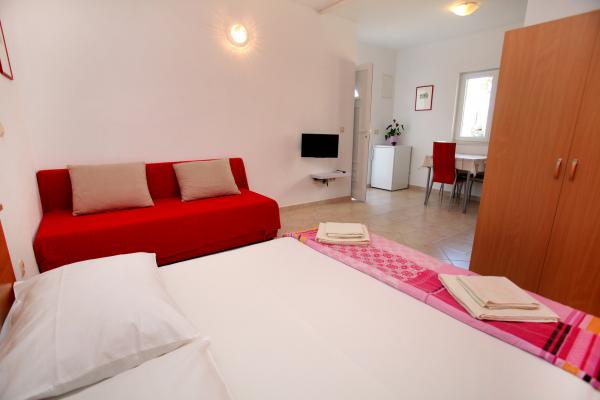 Apartments Cvita are located on the southwest side of the island of Ciovo, 700 m from the town of Trogir and 200 m from the first beach. Two apartments are located on the second floor of the family house, and the third on the ground floor and can accommodate from 2 to 4 people. The 3rd bedroom apartment is located on the 1st floor. Studio apartment is on the ground floor. Apartment (6) is located in the house next to this on the ground floor. All apartments have a direct sea view (except the Studio) Parking is provided in the yard in front of the building. Next to the house there is a barbecue and a room for a washing machine. We are open all year round. Welcome!