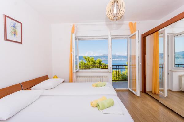 Domic Apartments are located in Slatina, 8 km from Trogir in Dalmatia, Croatia. Apartments are settled close to nice pebble beach and pine forest Ensures shadow during the hot summer months. Our apartments are nicely arranged and consist of, four bedrooms (two double bed and two triple bed), large living room with dining place connected to balcony, fully equipped kitchen, two bathrooms (one with shower and the other with bath tub) and 2 balconies with sea view. Living room is equipped with satellite TV, DVD and stereo. Apartments are air conditioned. Wi-Fi Internet connection is free to use. Safely parking place for your car is assured in front of apartment. At the back of the house there is a garden barbecue with table and chairs for preparing summer dinners with your family and friends. Your satisfaction is guaranteed with ours 40years experience in tourism ...