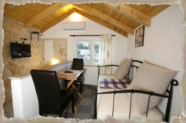 Read more Accommodation unitsThe house consists of three apartments. Can rent the whole, ie, all three apartments. This option is ideal for families, friends, small groups, etc., due to the fact that you have a large, large shared garden for the day-long activity, and you can always pull in your apartment with a separate entrance and bathroom and keep your privacy and intimacy. Tourist tax included in the price. The costs of electricity and water included. Inga Apartment 2/0 Echo apartment 2/1 extra bed Domenico apartment 2/1 extra bed Dimensions 1, extra beds 1,95x90 system.