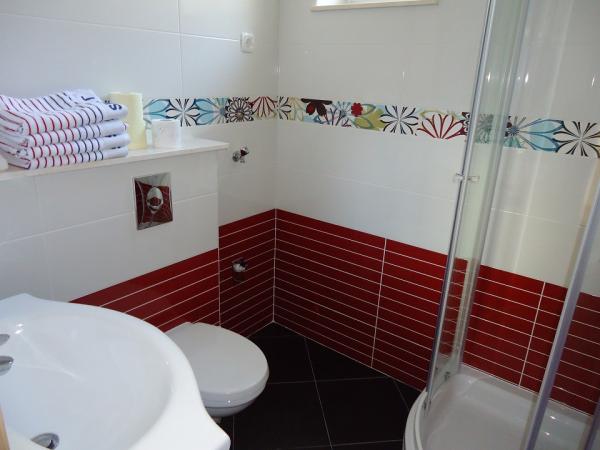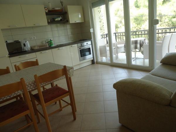 The new and luxurious apartments in a quiet little village Okrug Gornji on the island Ciovo. Ciovo is an island connected by bridge to the mainland. Each apartment has two bedrooms, a large kitchen equipped with all necessary appliances, satellite LCD TV, free wireless internet, and every apartment has a large terrace or a balcony. A pebble beach, 100m from the apartments and the most popular in Ciovo for families with children because it is not crowded and has plenty of shade on the beach because of the pine forests. Also the house has several small beaches on the rocks that offer greater privacy. Shop is located 300m from the apartment.