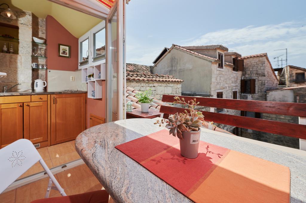 Apartments Ivica are situated in the center of Trogir. House built in traditional dalmatian architectural style, in the old part of the town, peacefull and quiet environment, the oasis of quietness and peace, close to the entertaining facilities, courtyard in the greenery shadow, garden full of greenery, fireplace at the guest's disposal . Apartments are situated about 100 m from the sea, house is in the middle of old town, nearest grocery shop about 50 m away, nearest restaurant about 50 meters away. Public parking is available nearby, the price is 7 EUR per day.