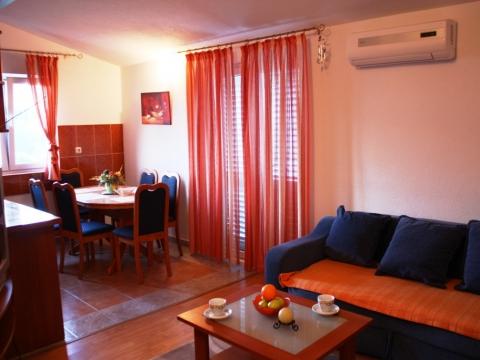 Apartment 1 is located in the southern part of the house and its full of sunshine.With a wide terrace with a view of the old part of Trogir and the nearby island of Ciovo and the sea. On a pleasant terrace where you can enjoy your breakfast and romantic evenings. This apartment is ideal for your summer vacation while you enjoy the sun and sea. The apartment is suitable for families with pets and young people looking for fun in Dalmatia. Apartment 2 is located to the north of the house and offers peace to everyone looking for relaxation. With a pleasant terrace that offers views of the nearby pine forest. On a terrace you can enjoy breakfast and romantic dinners. This apartment is ideal for your summer vacation and calm vacation. The apartment is suitable for families with pets and young people looking for fun in Dalmatia.
