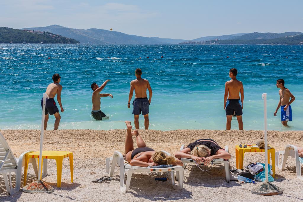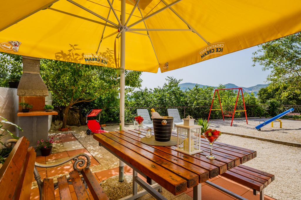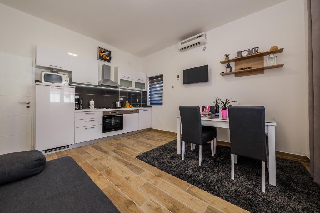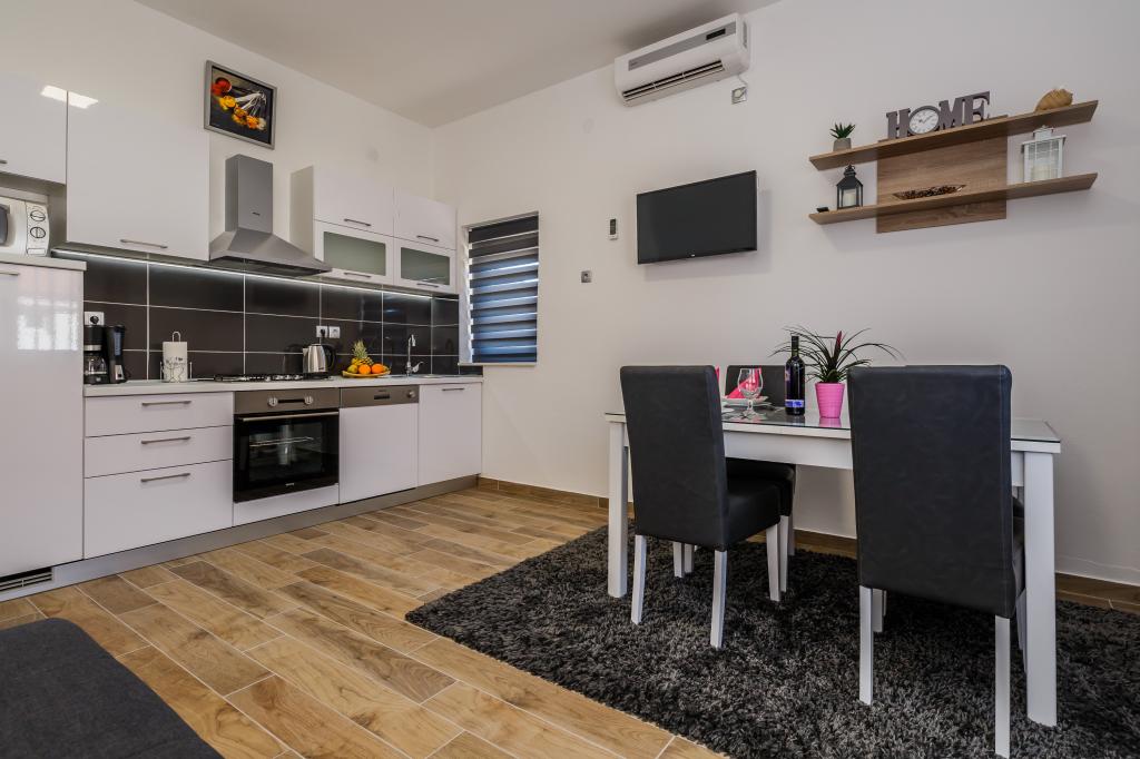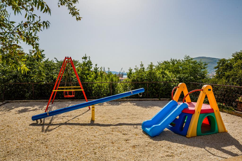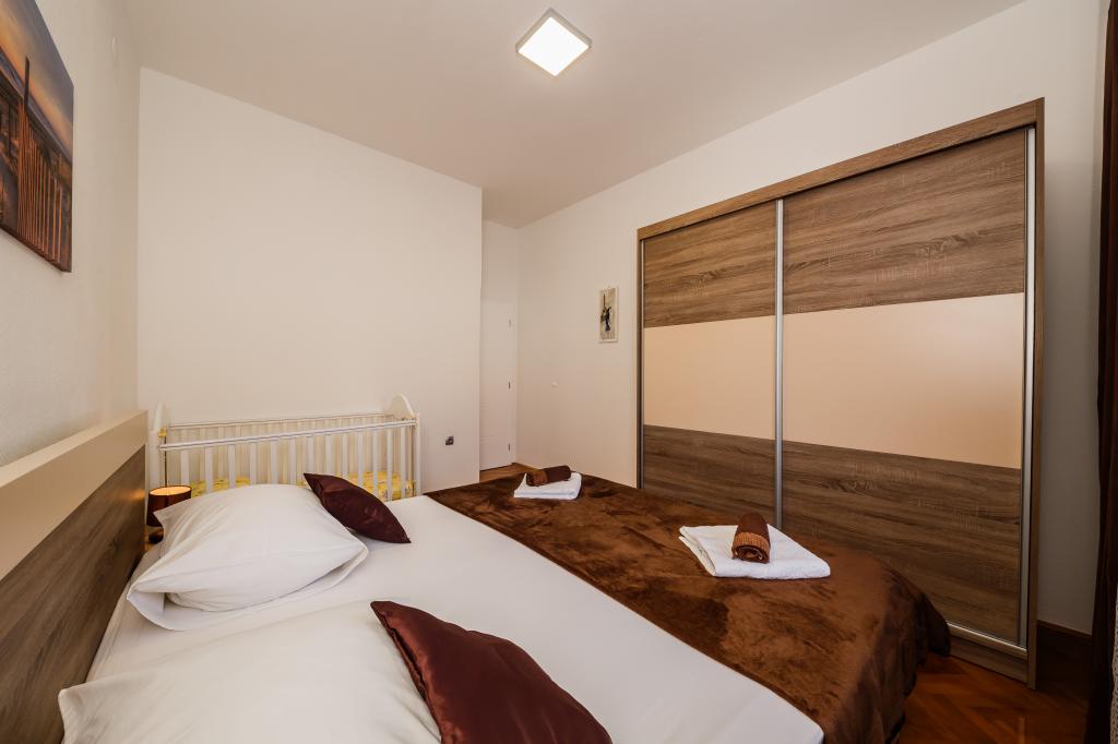 The apartment is located on the island of Ciovo, 300 meters from the town center and 600 meters to the beach. The apartment is fully equipped with two bedrooms, living room, kitchen, toilet. Size 75 square meters, includes Wi-fi, air conditioning, two LCD, satellite TV with 500 channels. The apartment has a terrace with garden, children's playground (slide, seesaw, swing), grill and Trogir. Free parking is located near the apartments.