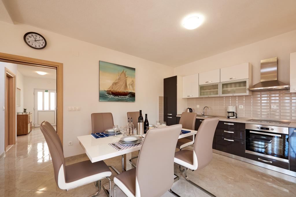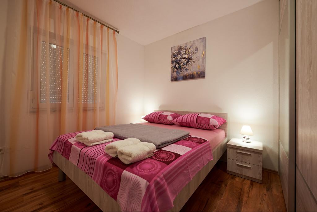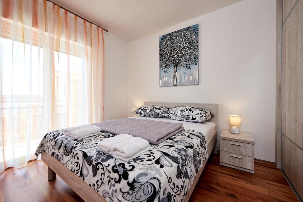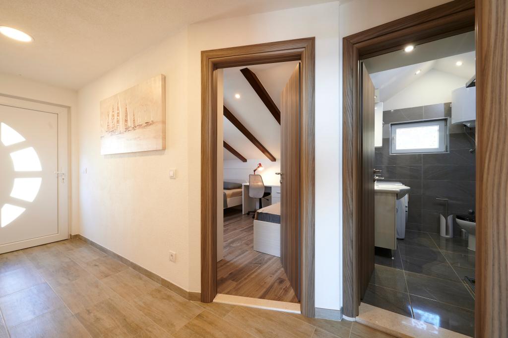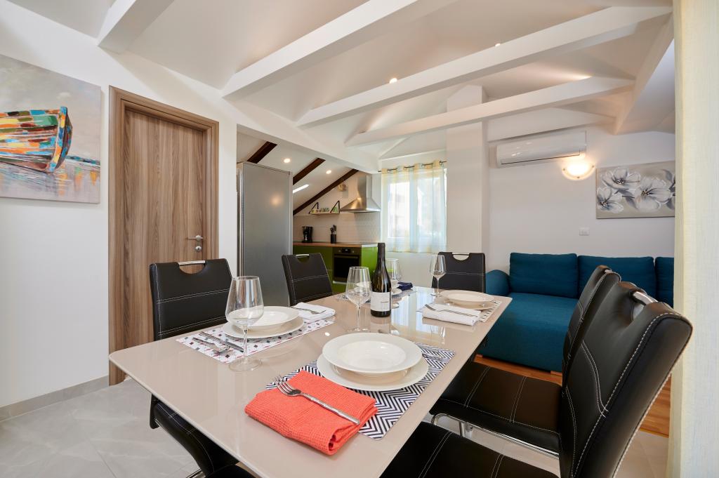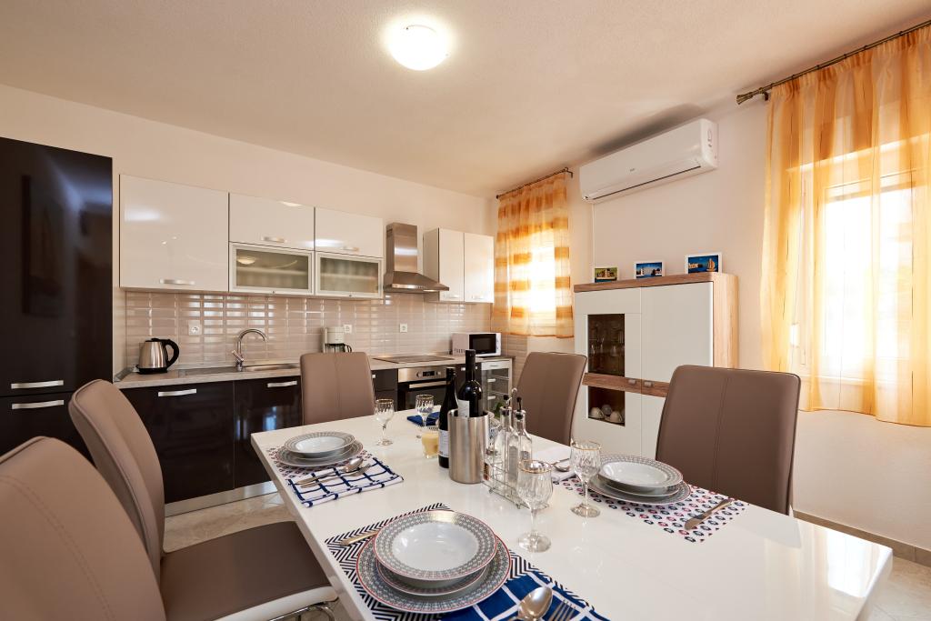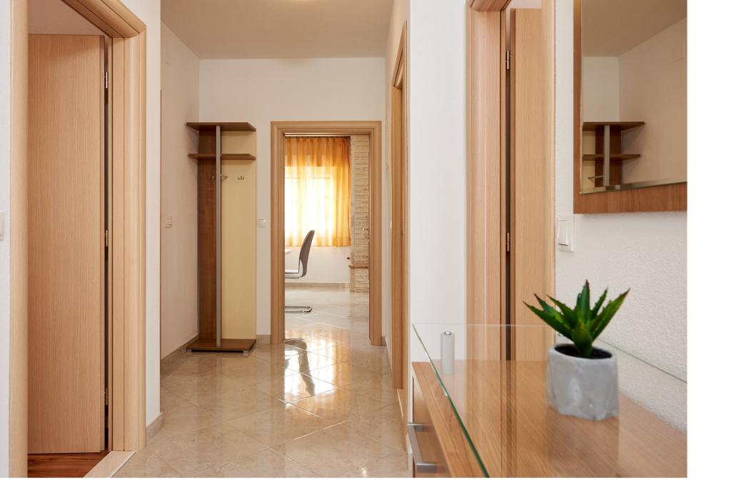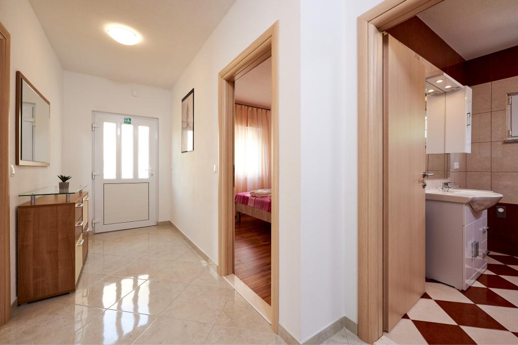 Apartments Magdalena are comfortable and well-equipped. They are located on the island of Čiovo, just 1.3 km from the center of the old town of Trogir. They have a beautiful view of the sea and the surrounding area. The apartments are located in a quiet neighborhood, just 250 m from the nearest beach. Restaurants, a supermarket, an ATM, a bus station and a boat line to the center are within 400 m of the apartment. The apartment is accessed by a road that goes up a hill. The equipment includes air conditioning, free parking, WiFi, a fully equipped kitchen, cable TV, a washing machine, a dishwasher... The apartments are 75 and 85 square meters plus outdoor terraces with comfortable armchairs and egg-shaped hanging swings. Apartment 1 is located on the first floor and has three bedrooms, while apartment 2 is on the second floor and has two bedrooms and two toilets. Everything is nicely decorated, clean and tidy. The apartments are a 5-minute walk from the beach and a 15-minute walk from the center of Trogir. The nearby beach is the departure point for the boat line that goes to the city center, the ride takes 10 minutes.