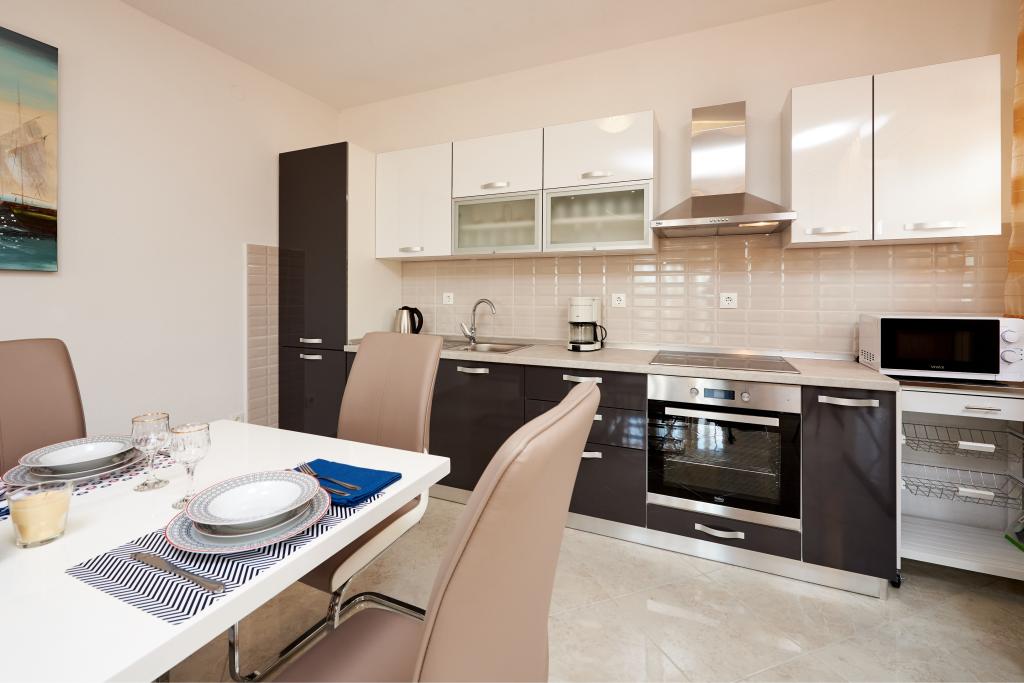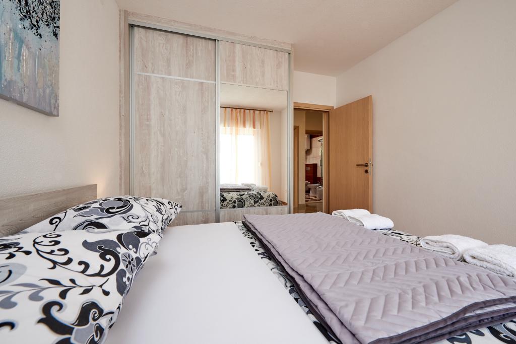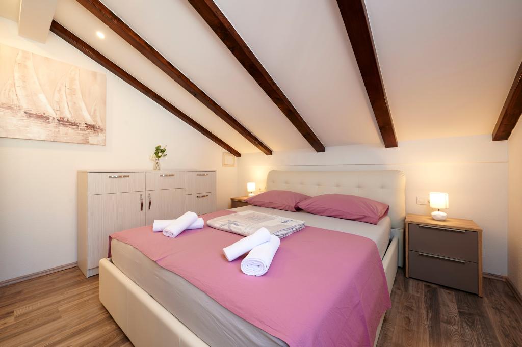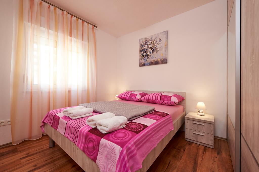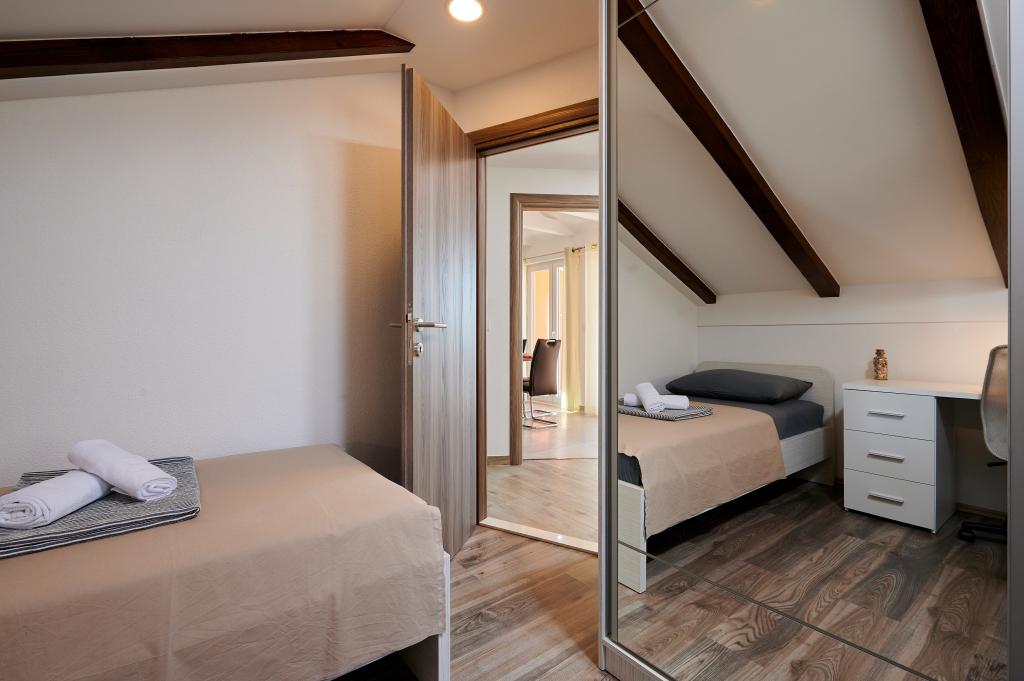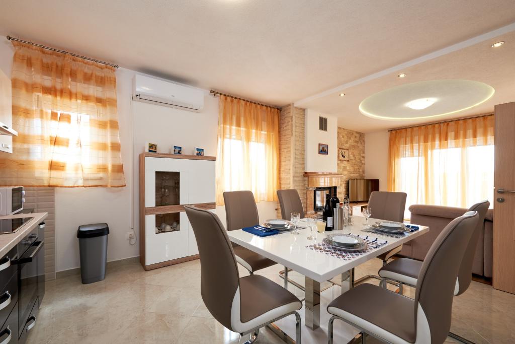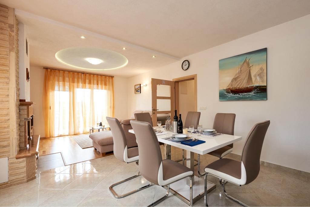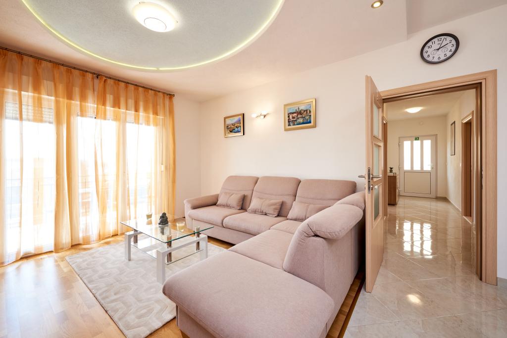 Apartments Magdalena are comfortable and well-equipped. They are located on the island of Čiovo, just 1.3 km from the center of the old town of Trogir. They have a beautiful view of the sea and the surrounding area. The apartments are located in a quiet neighborhood, just 250 m from the nearest beach. Restaurants, a supermarket, an ATM, a bus station and a boat line to the center are within 400 m of the apartment. The apartment is accessed by a road that goes up a hill. The equipment includes air conditioning, free parking, WiFi, a fully equipped kitchen, cable TV, a washing machine, a dishwasher... The apartments are 75 and 85 square meters plus outdoor terraces with comfortable armchairs and egg-shaped hanging swings. Apartment 1 is located on the first floor and has three bedrooms, while apartment 2 is on the second floor and has two bedrooms and two toilets. Everything is nicely decorated, clean and tidy. The apartments are a 5-minute walk from the beach and a 15-minute walk from the center of Trogir. The nearby beach is the departure point for the boat line that goes to the city center, the ride takes 10 minutes.