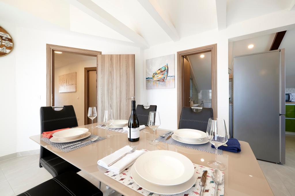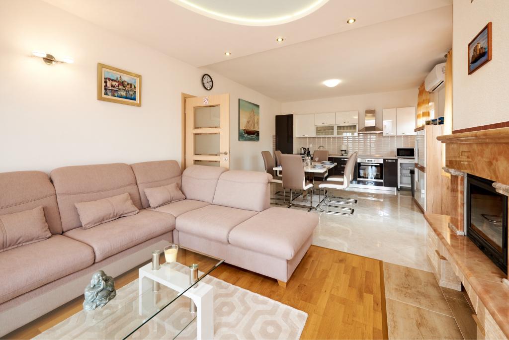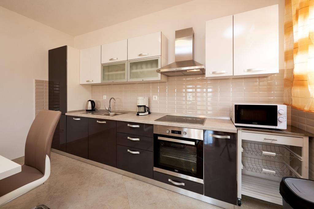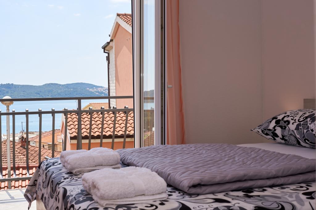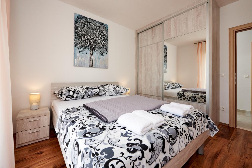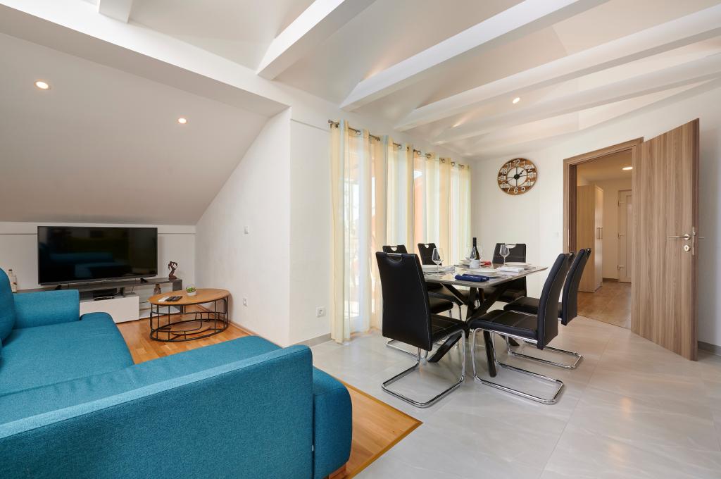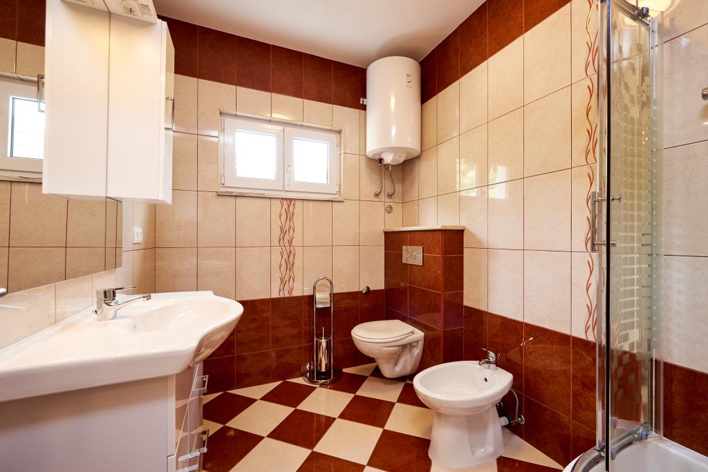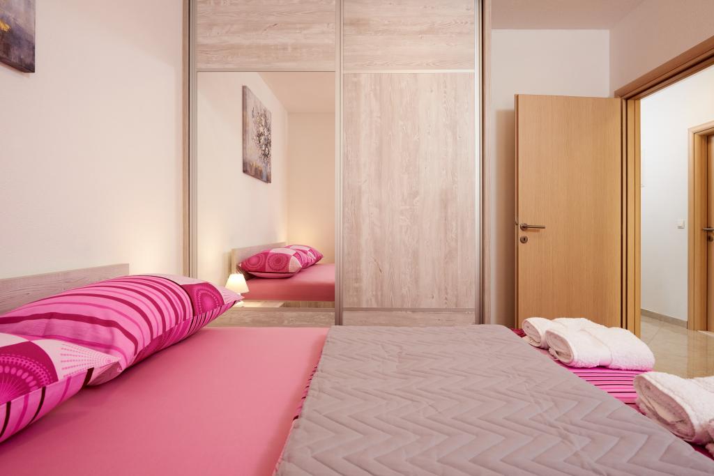 Apartments Magdalena are comfortable and well-equipped. They are located on the island of Čiovo, just 1.3 km from the center of the old town of Trogir. They have a beautiful view of the sea and the surrounding area. The apartments are located in a quiet neighborhood, just 250 m from the nearest beach. Restaurants, a supermarket, an ATM, a bus station and a boat line to the center are within 400 m of the apartment. The apartment is accessed by a road that goes up a hill. The equipment includes air conditioning, free parking, WiFi, a fully equipped kitchen, cable TV, a washing machine, a dishwasher... The apartments are 75 and 85 square meters plus outdoor terraces with comfortable armchairs and egg-shaped hanging swings. Apartment 1 is located on the first floor and has three bedrooms, while apartment 2 is on the second floor and has two bedrooms and two toilets. Everything is nicely decorated, clean and tidy. The apartments are a 5-minute walk from the beach and a 15-minute walk from the center of Trogir. The nearby beach is the departure point for the boat line that goes to the city center, the ride takes 10 minutes.