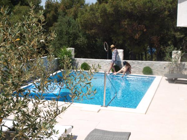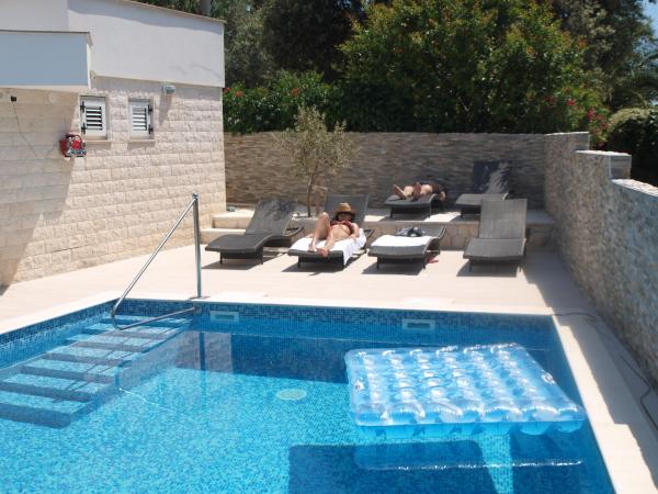 Apartments Marko are located in a quiet part of the island Ciovo, in Okrug Donji near Trogir which is under UNESCO protection. Apartments Marko are situated 100m from the beach which can be reached along the path through the beautiful pine forest and green Mediterranean plants. Each apartment is fully equipped and modern TV / hour conditioning, Internet, 2 air conditioners, 2 bathrooms, living room, kitchen, parking, and a terrace overlooking the more.Pored facility was built pool of 34 m2. The town of Trogir is near that gives you the possibility of enjoying the 4000 years of history and enjoy the nightlife. Guests can be organized through agencies rent boats, scooters, and day trips to neighboring islands. The airport is 10 km from the apartment. The airport is conveniently can rent a private vehicle.