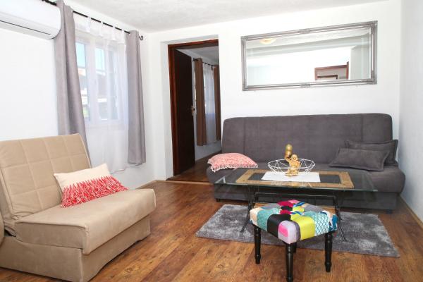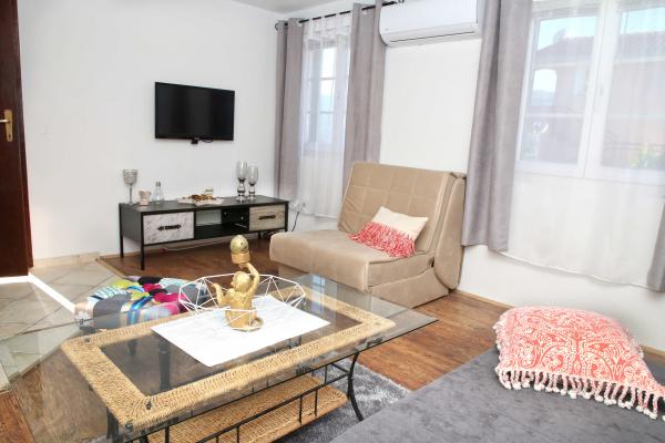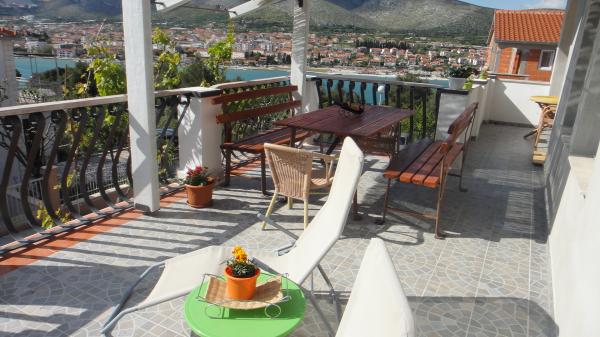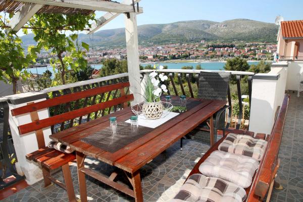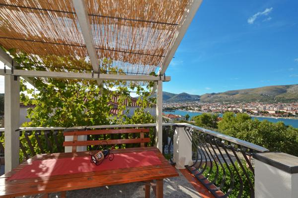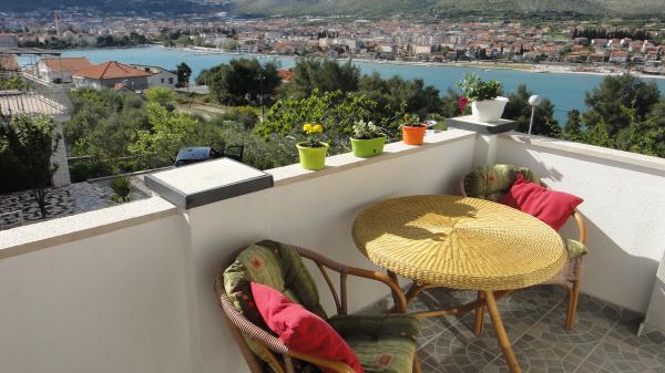 Apartment three bedroom, perfect for vacation, recreation, with terrace with beautiful sea view and town of Trogir. The advantage of the apartment is the distance from the center 10 min walk, from the beach 5min, and the airport 3km. Recreational area includes fitness corner, jogging track and nature walking. Parking is provided.