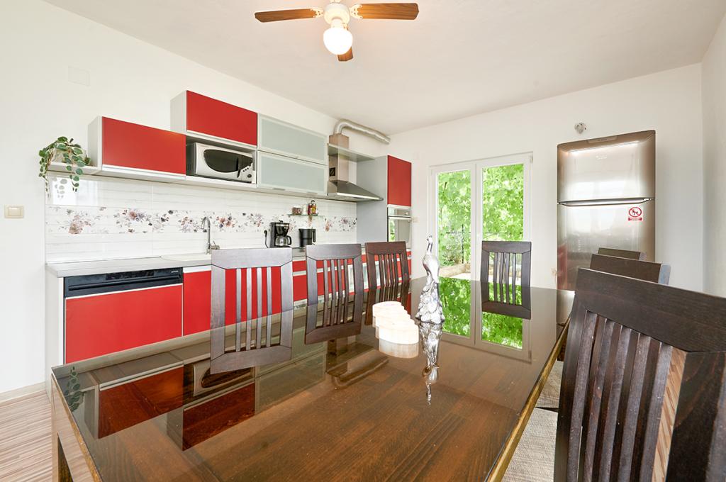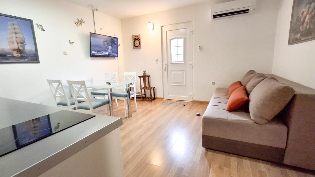 Apartments Ugrina are located in the beautiful Mediterranean village of Mastrinka on the island of Čiovo. The house has two apartments for rent, located on the same floor. One apartment has one bedroom and the other has two bedrooms. A total of 12 people can stay. There is space for three cars in front of the house. The apartments are fully equipped. The apartments offer a direct view of the sea. Each apartment has an outdoor terrace with a barbecue. The house is well connected to the mainland. The island of Čiovo is connected to the mainland by two bridges. The old bridge connects it to the city of Trogir, which is on the UNESCO World Heritage List. The new bridge connects it to the mainland and is the closest route to Split airport. The city of Split is 25 kilometers away, and Diocletian's Palace in Split is on the UNESCO World Heritage List. Neighboring towns are Žedno, Arbanija and Okrug Gornji.