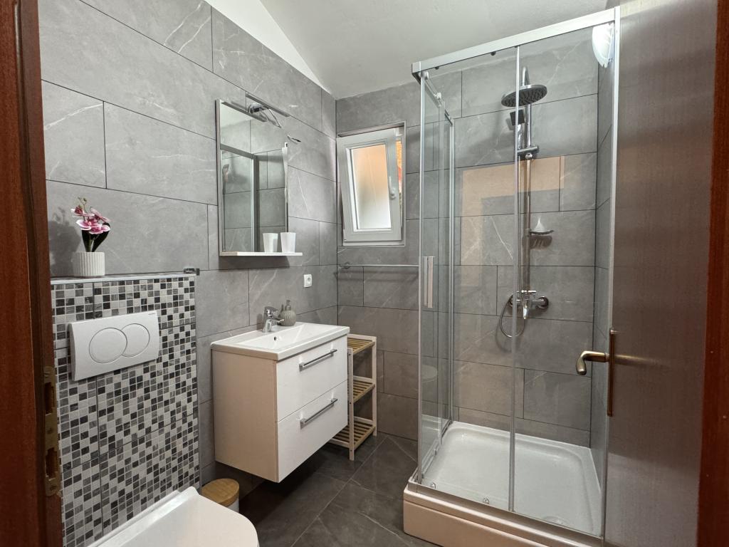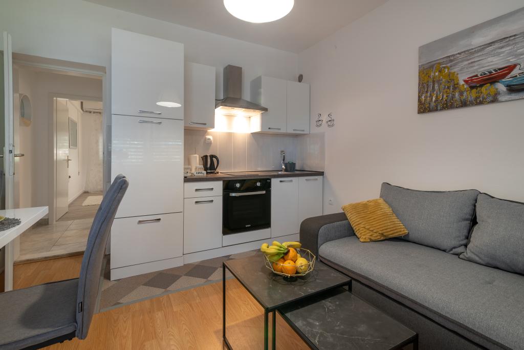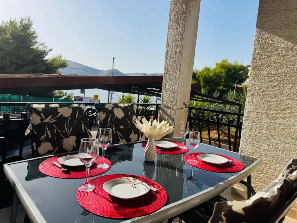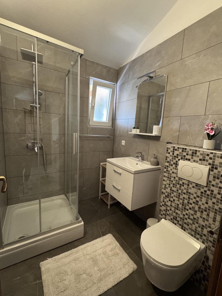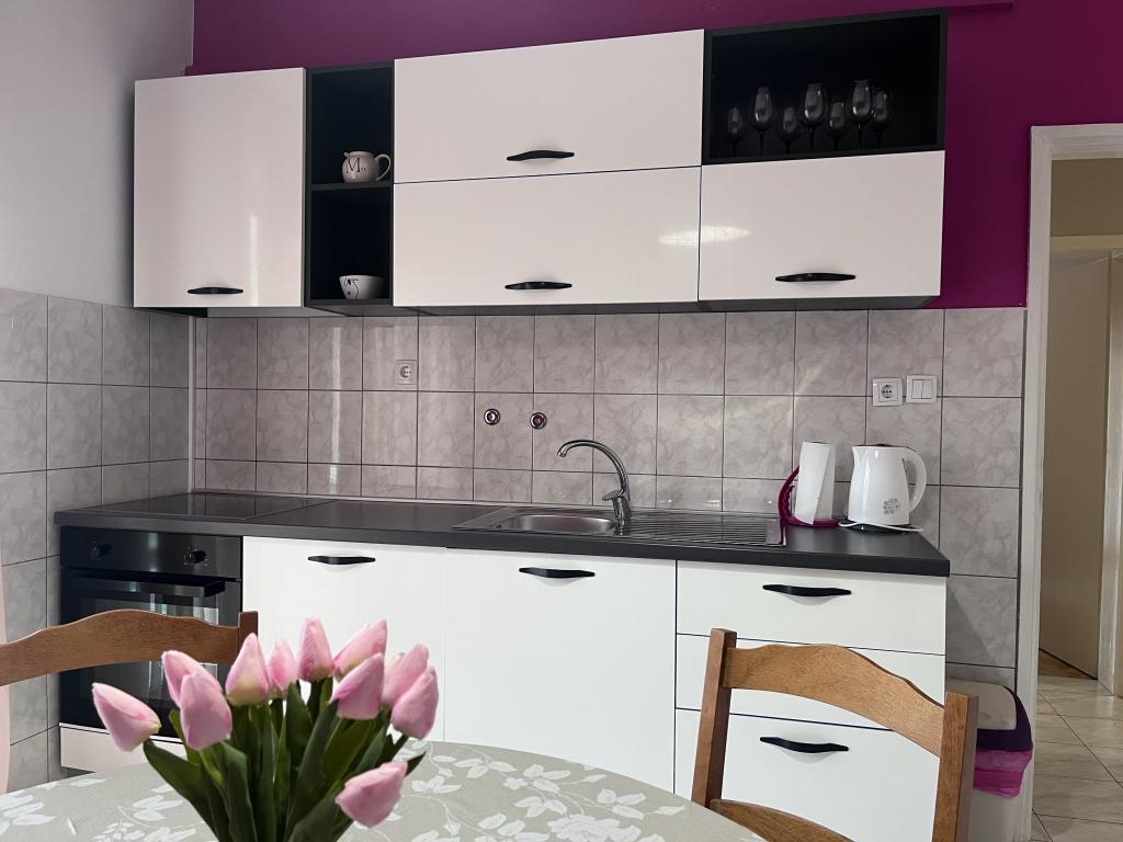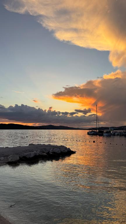 Modrified, air conditioned and all with sea view Apartments Villa Mirella are located right by the sea, right next to the beach! The facility is located 15 min walk to the center and 5 min from the house there is a camp with bachelor plazas and contents, cafe bar, restaurant etc ... 10 min walk is 1.5 km long sandy beach with all contents, every 20 m is cafe bar, restaurants, palaces, ice cream and other .... Near the house there is everything, super market, restaurant, pharmacy, cafe bar, post office,.
